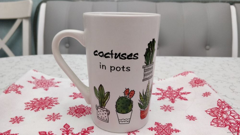 - керамическая кружка с изображением кактусов на всей поверхности изделия объёмом 400 мл стоимостью 6 рублей (фотографии №4,5);