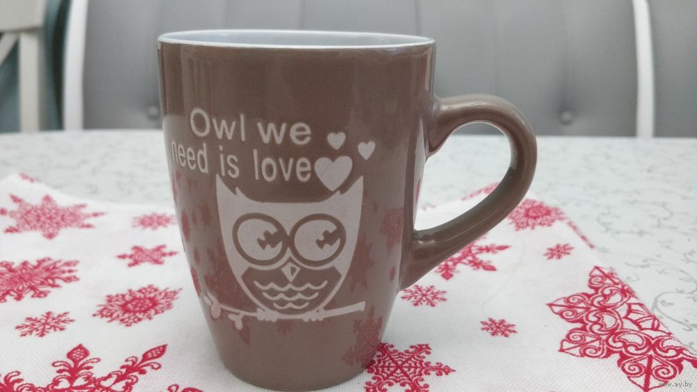 - керамическая кружка с надписью «Owl we need is love» объёмом 320 мл стоимостью 5 рублей (фотографии №6,7);