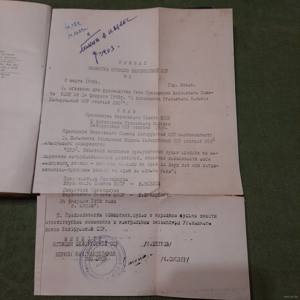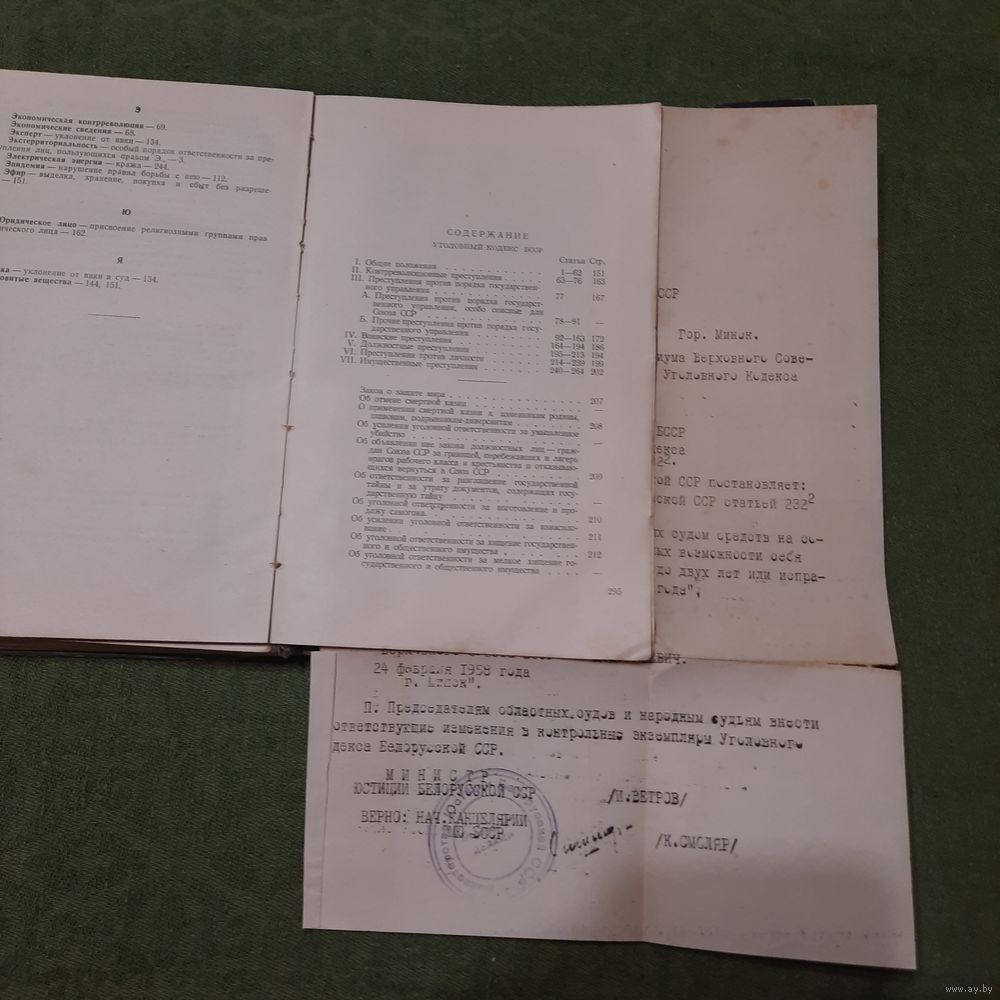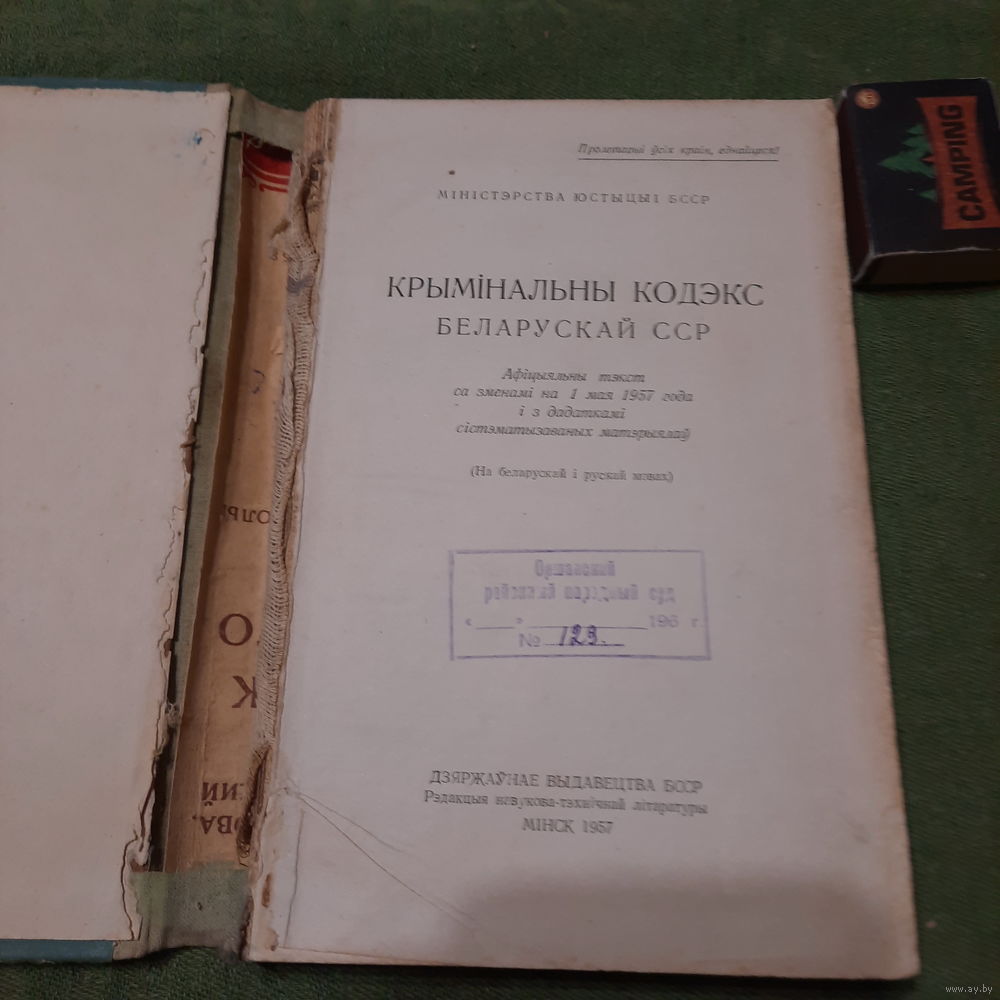 | На двух языках. Принадлежала судье первого участка Оршанского района В.И.Непомнящему (надпись на форзаце в конце книги) | |