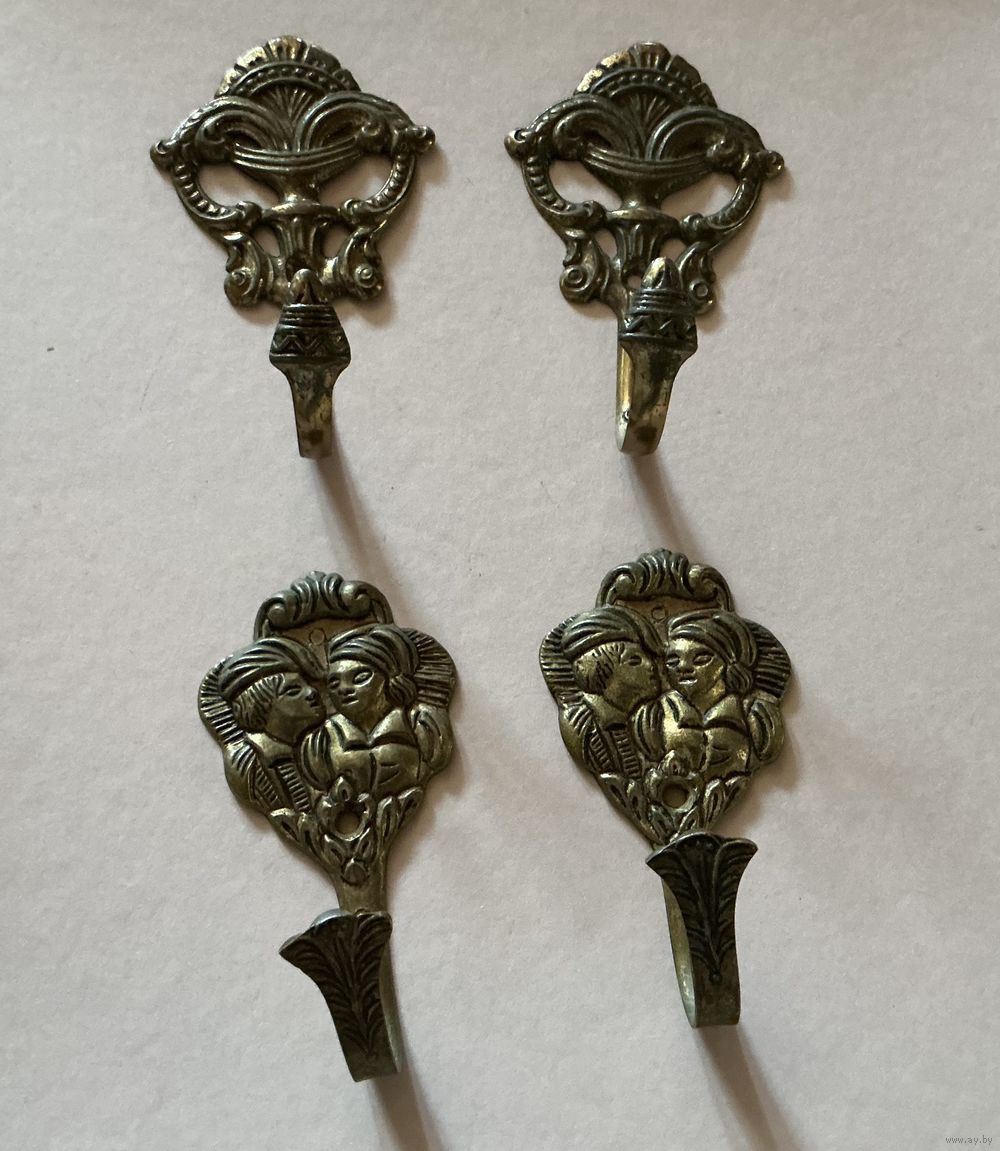 Красивые винтажные крючки бронза или латунь 9,5 см х 5,5 см,