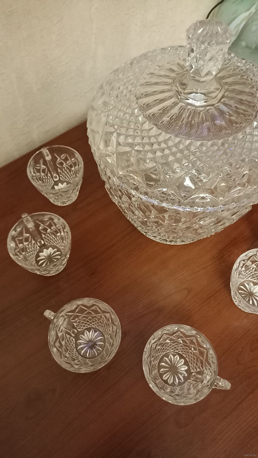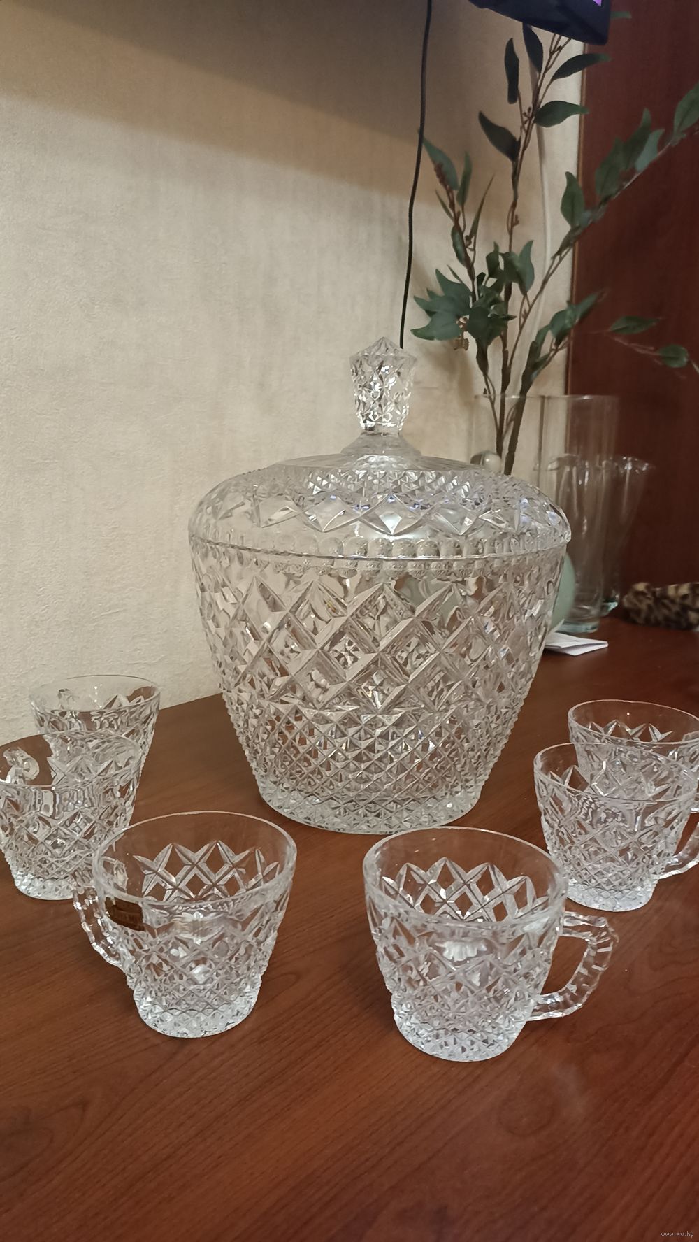 Роскошный набор для крюшона (компота, морса), состоящий из крюшонницы и кружек. Богемия. Чехия 70-ые годы 20 века.
