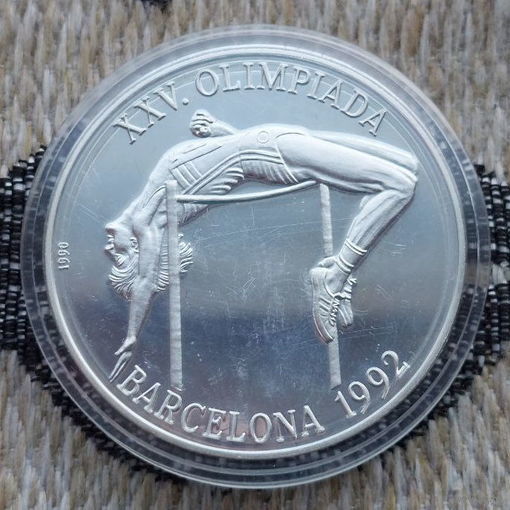 Куба 10 песо 1990 года, Рroof. "Олимпиада в Барселоне 1992 года". Прыжок в высоту. Герб. Серебро 925. Сторгуй за свою цену, предложи обмен!