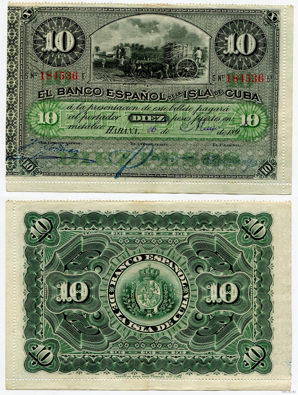 Куба. 10 песо (образца 1896 года, P49a, XF)