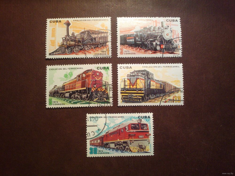 Куба 1975 г.Локомотивы.Гашеная с клеем.Полная серия.