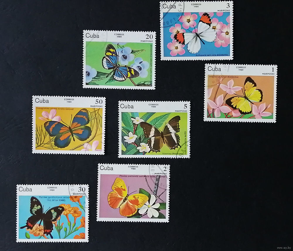 Куба 1984 г. Бабочки. Насекомые. Фауна, полная серия из 7 марок #0211-Ф1P41