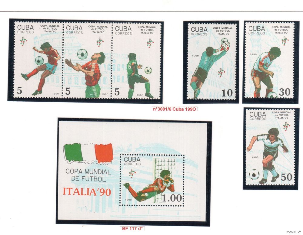 Куба-1990(Мих.3356-3361,Бл.117) , ** , Спорт, Футбол, ЧМ-1990, (полная серия)