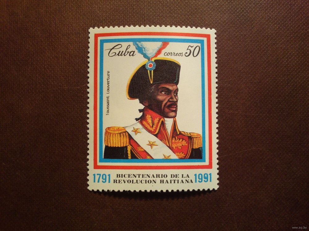 Куба 1991 г.200-я годовщина Гаитянской революции .Чистая с клеем.MNH.Стоимость по каталогу : чистая - 1,70. гашеная - 0,50 евро.Полная серия.