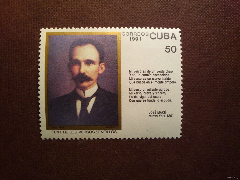 Куба 1991 г.Хосе Марти -кубинский поэт, писатель, публицист, переводчик, философ и революционер.Чистая с клеем.MNH.Стоимость по каталогу : чистая - 1,70. гашеная - 0,50 евро.Полная серия.