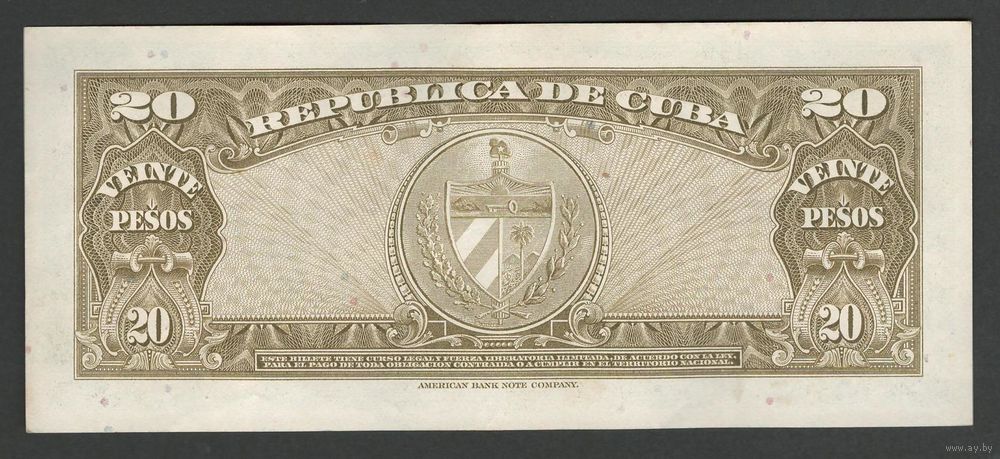 Куба 20 песо 1960 года. Тип P-80с. Состояние аUNC!