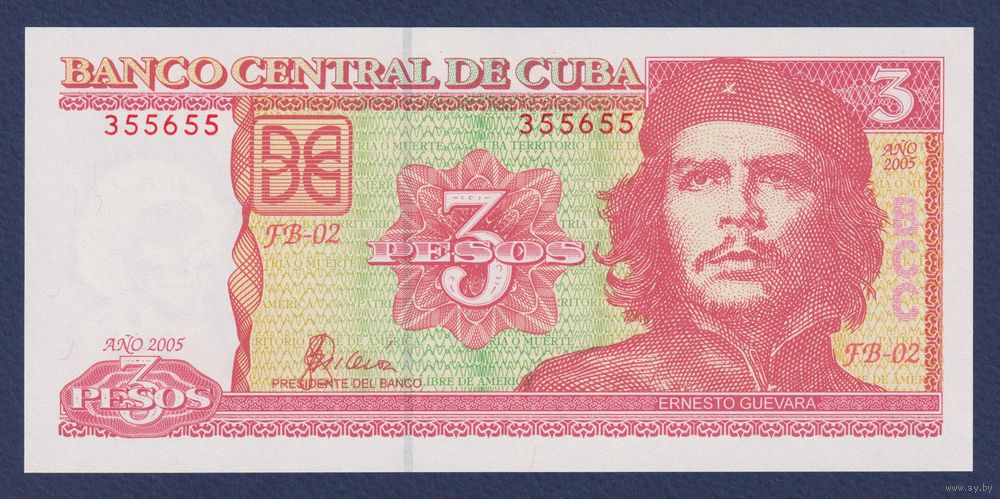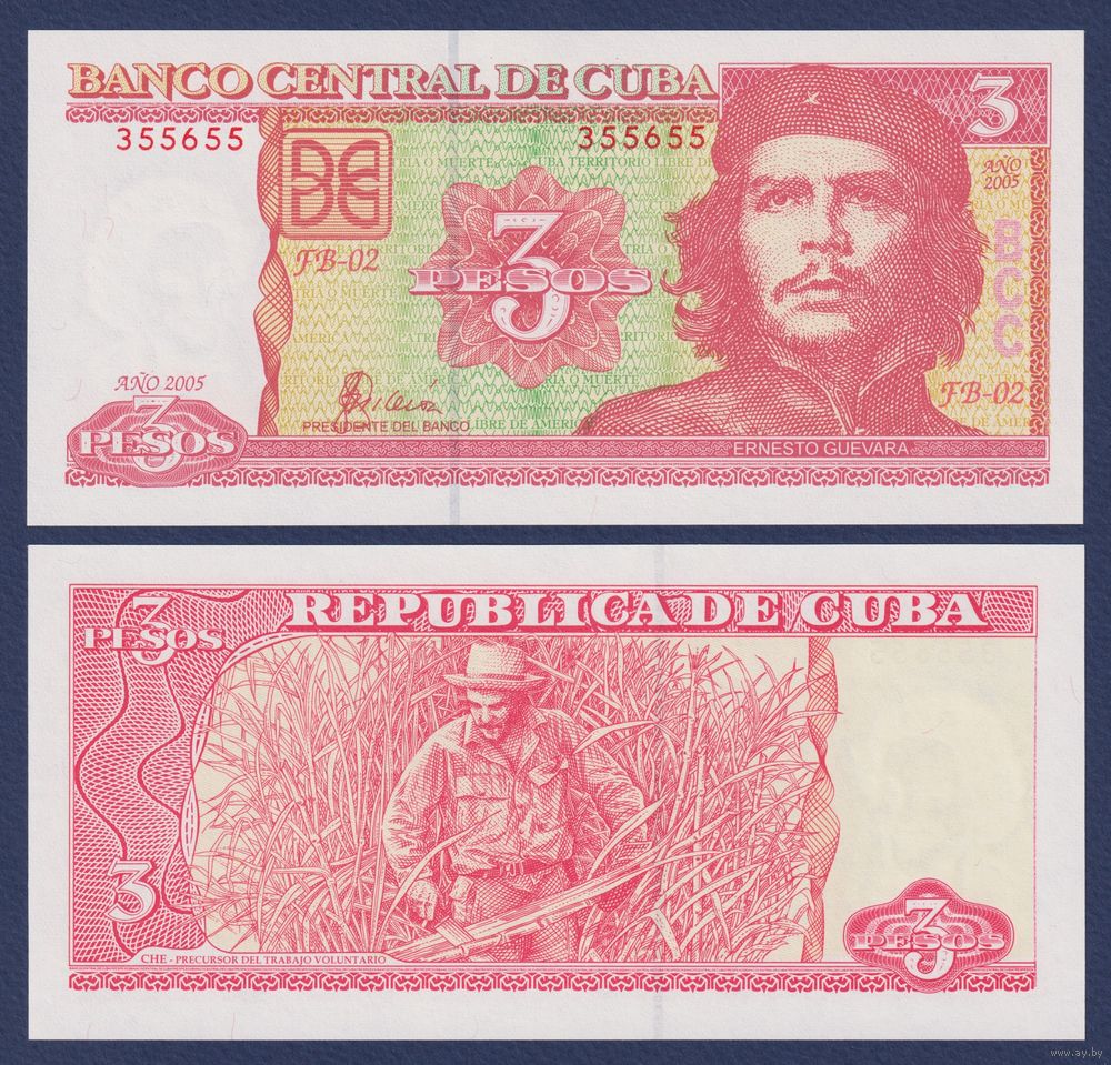 Куба, 3 песо 2005 г, P-127b (FB, команданте Эрнесто Че Гевара), UNC
