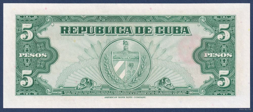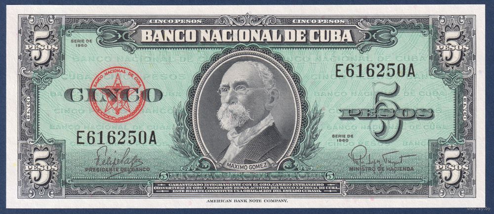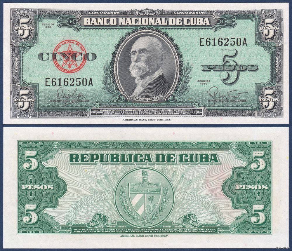 Куба, 5 песо 1960 г., P-92 (E, генерал Максимо Гомес), UNC