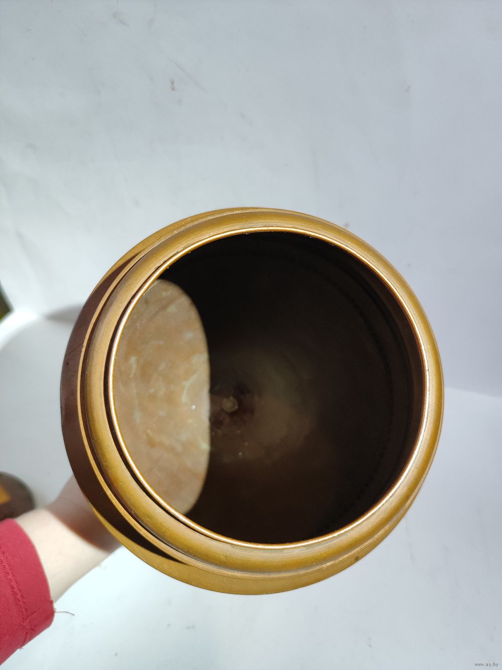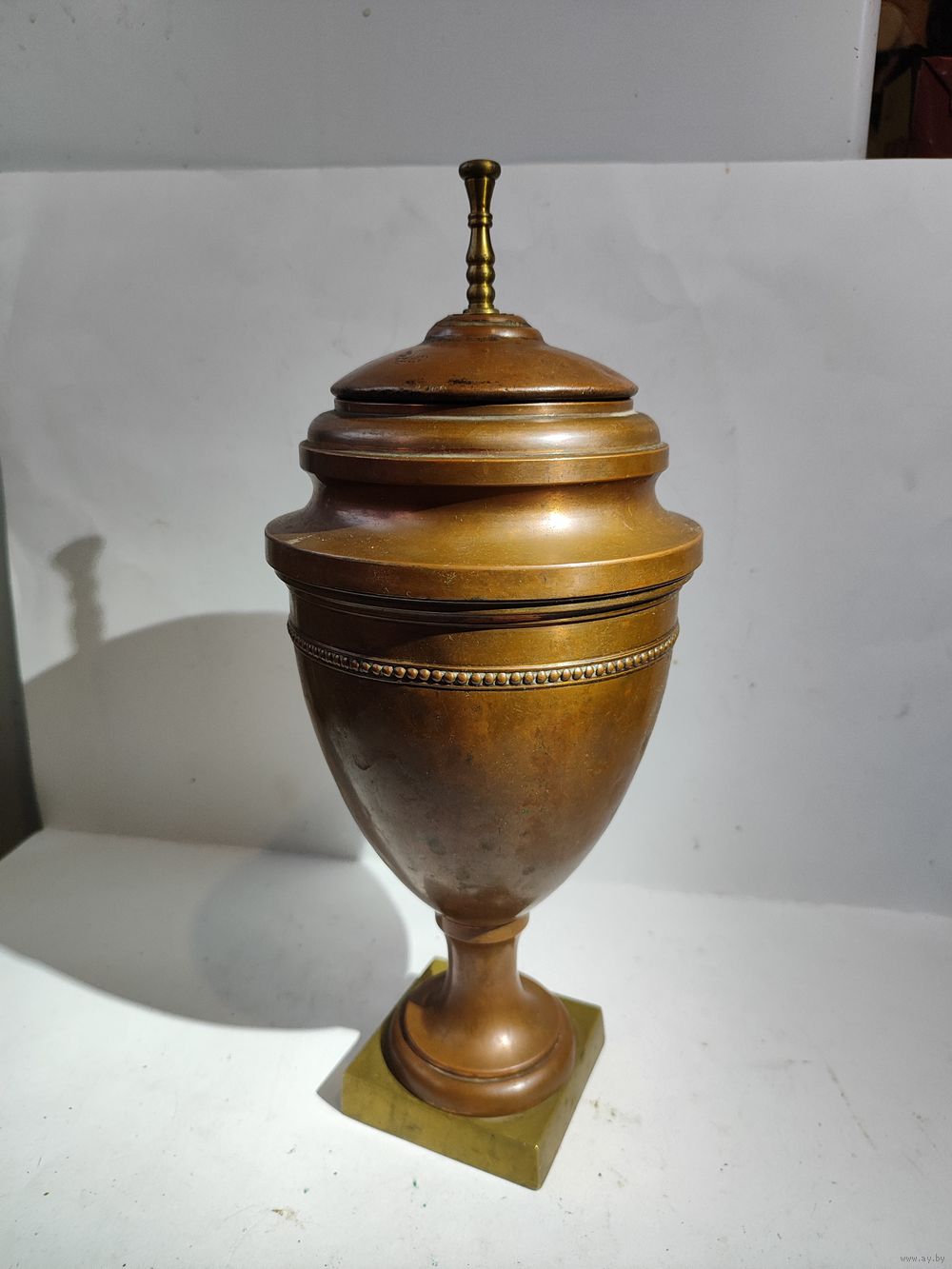 Высота -36 см. Медь ,основание и навершие латунь .На крышке клеймо -арабская вязь. Состояние на фото( следы бытования,небольшие вмятины).