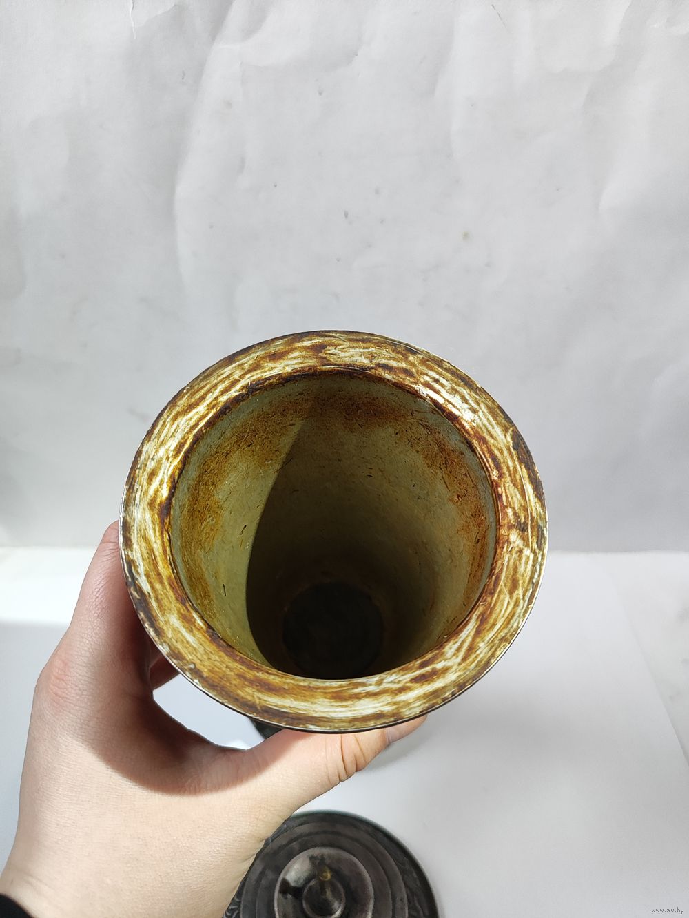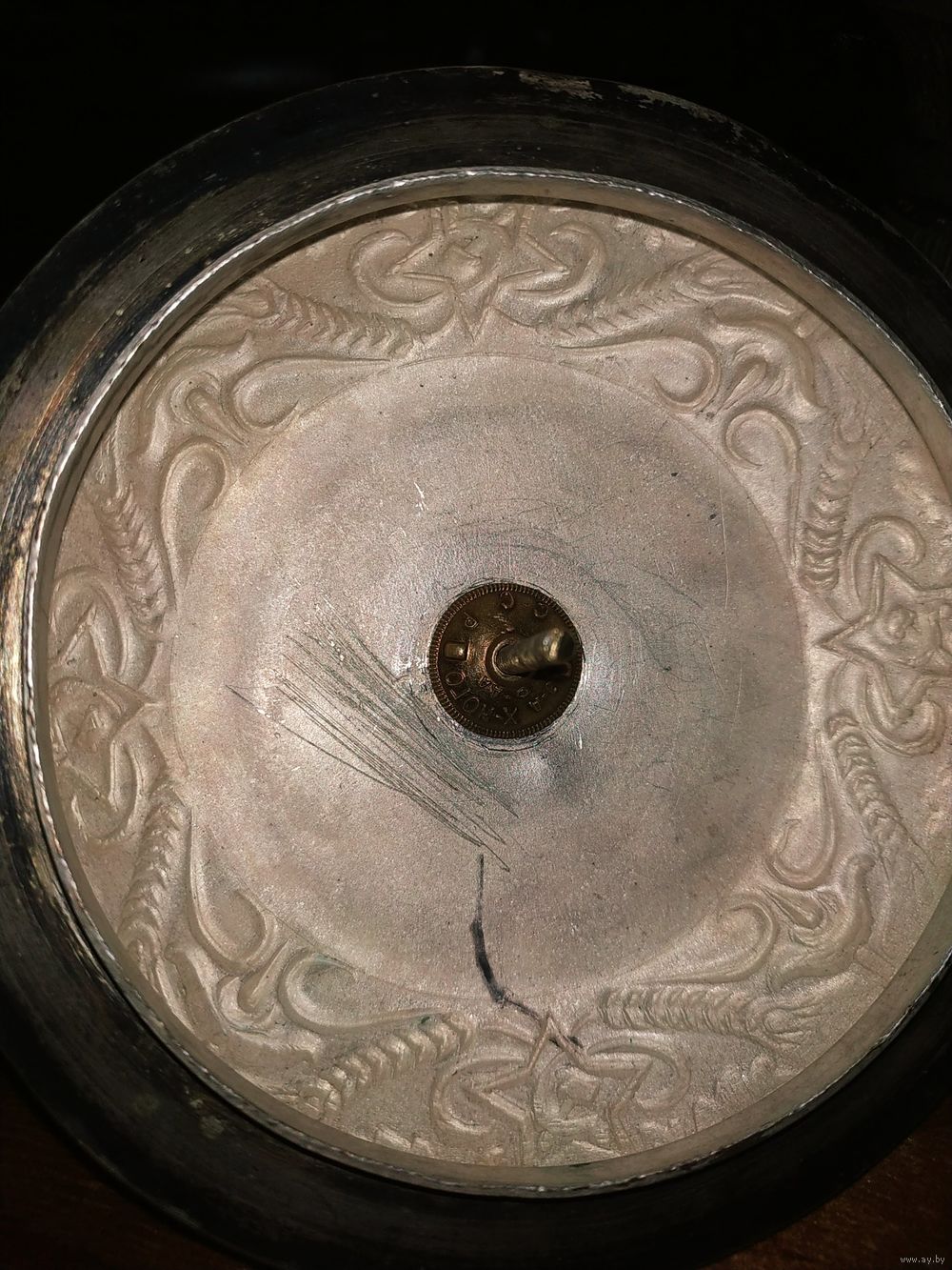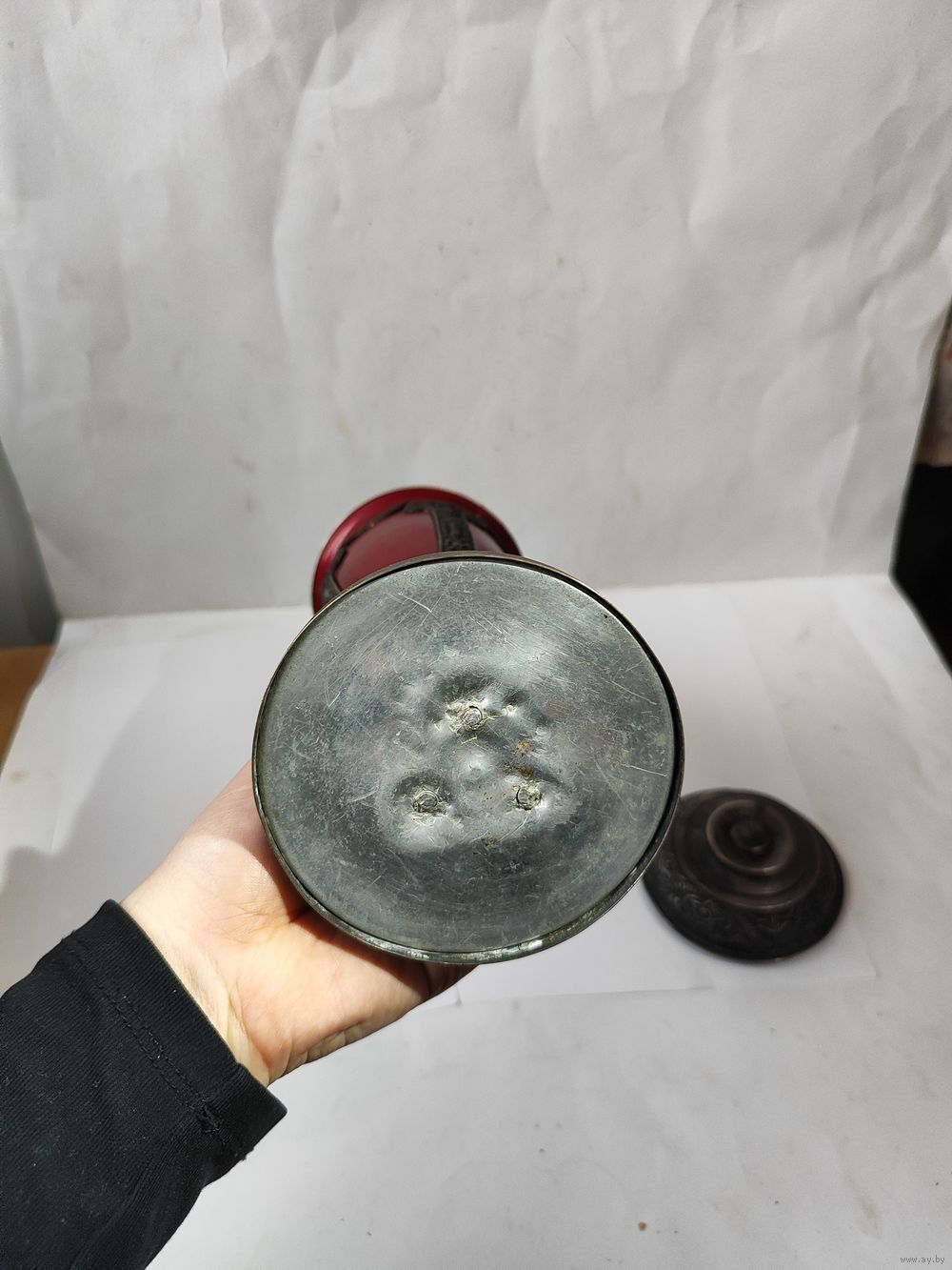 Высота с вершинкой -30 см. 50 -60 годы. Нет навершия на крышке(в виде звезды). На основании и на горлышке остатки старого лака. Состояние на фото(скольчики краски по алюминиевому корпусу, царапинки, пятна.). Надпись на основании(плохо видна из за лака). Коллективу баскетболистов БГУ от коллектива баскетболистов ДГУ(Дагестанский Государственный Университет). март. 1957 г. Закрутка на крышке : з-д Х-ного фонда СССР.
