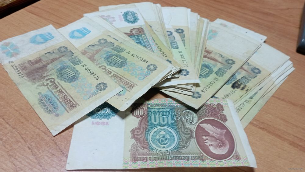 Кучка советских денег 100 рублей 1991-1992 года более 45 штук