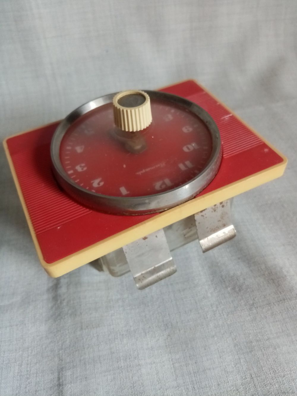 | Состояние - на фото, Таймер - рабочий, часы - неизвестно: с батарейкой механизм работает, но стрелки стоят на месте | |