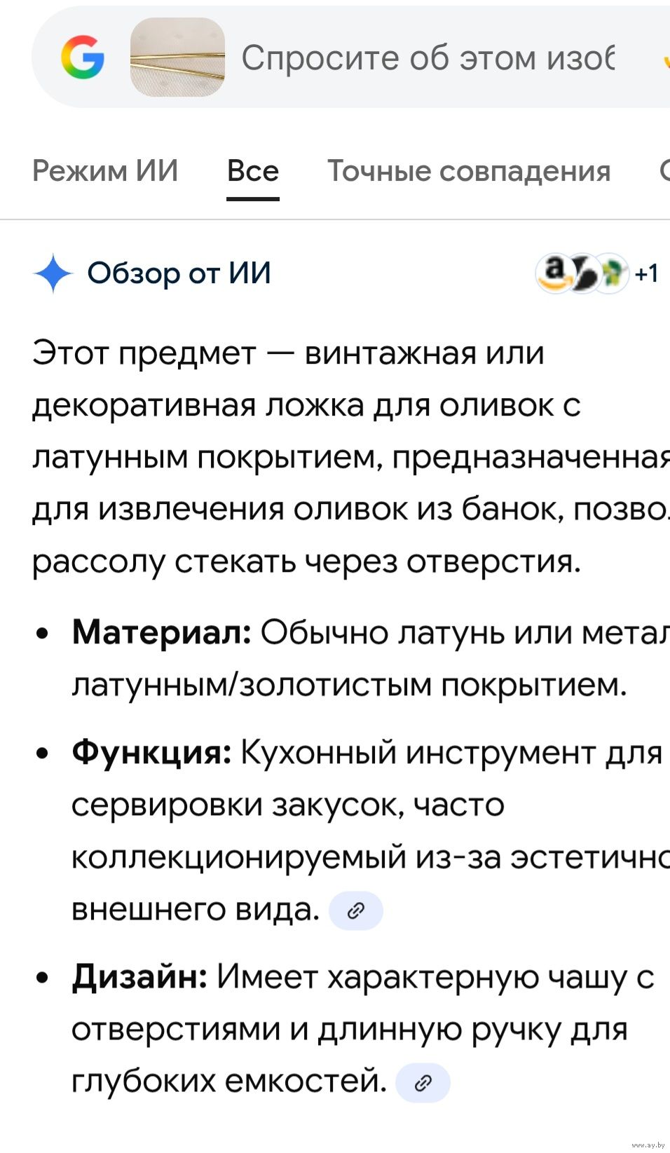 Кухонный инструмент для сервировки: винтажная декоративная ложка для оливок Германия 18 см.