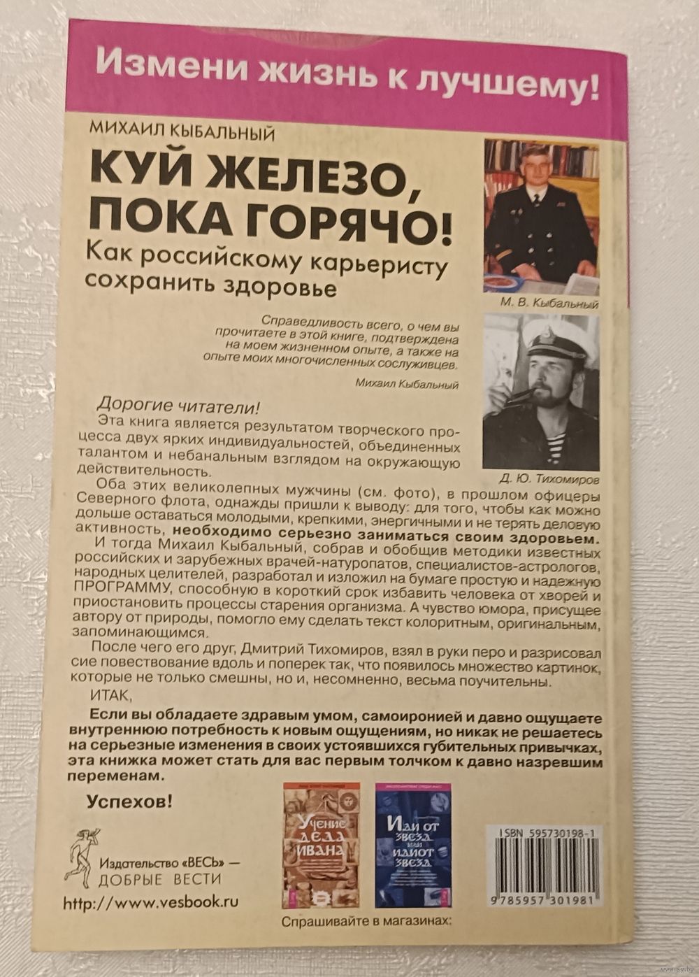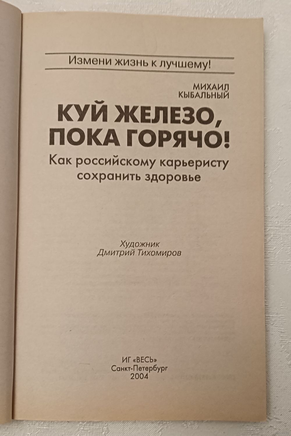 Куй железо, пока горячо! Как российскому карьеристу сохранить здоровье. Михаил Кыбальный. СПб, ИГ Весь, 2004.- 224 с. — (Серия: Дурака учить что мертвого лечить), мягкая обложка.