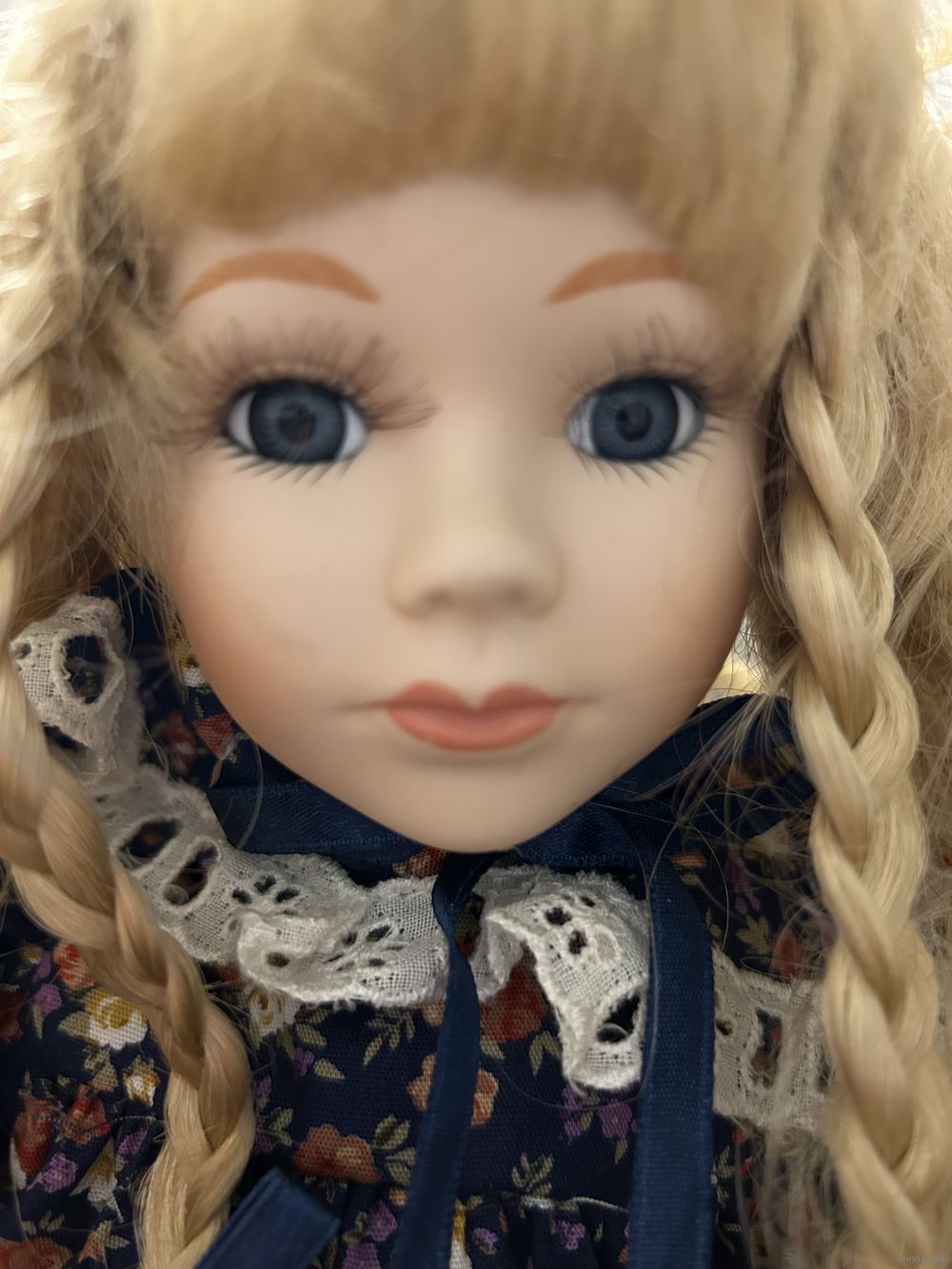 Куколка Kim приехала из Германии, среднего роста 40 см,аккуратненькая, носит белый фартук.