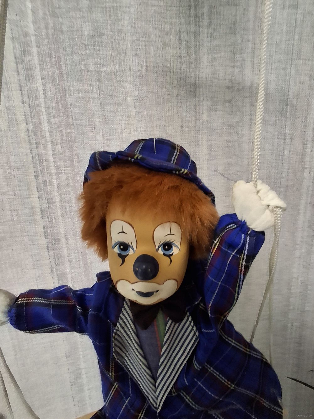 Большая коллекционная (более 80см с подвесом) кукла -клоун на качелях. 80-е
