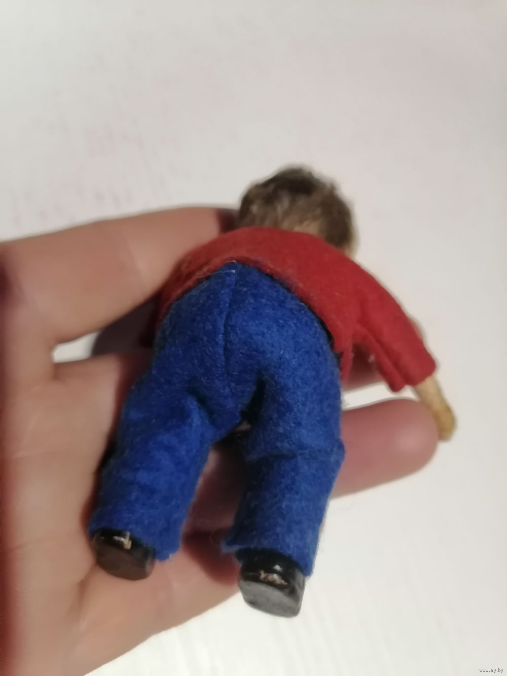 Личико из попье моше, прорисовка в отличной сохранности. Паричёк родной, одежда тоже, штанишки реставрировала родные пришли в негодность.