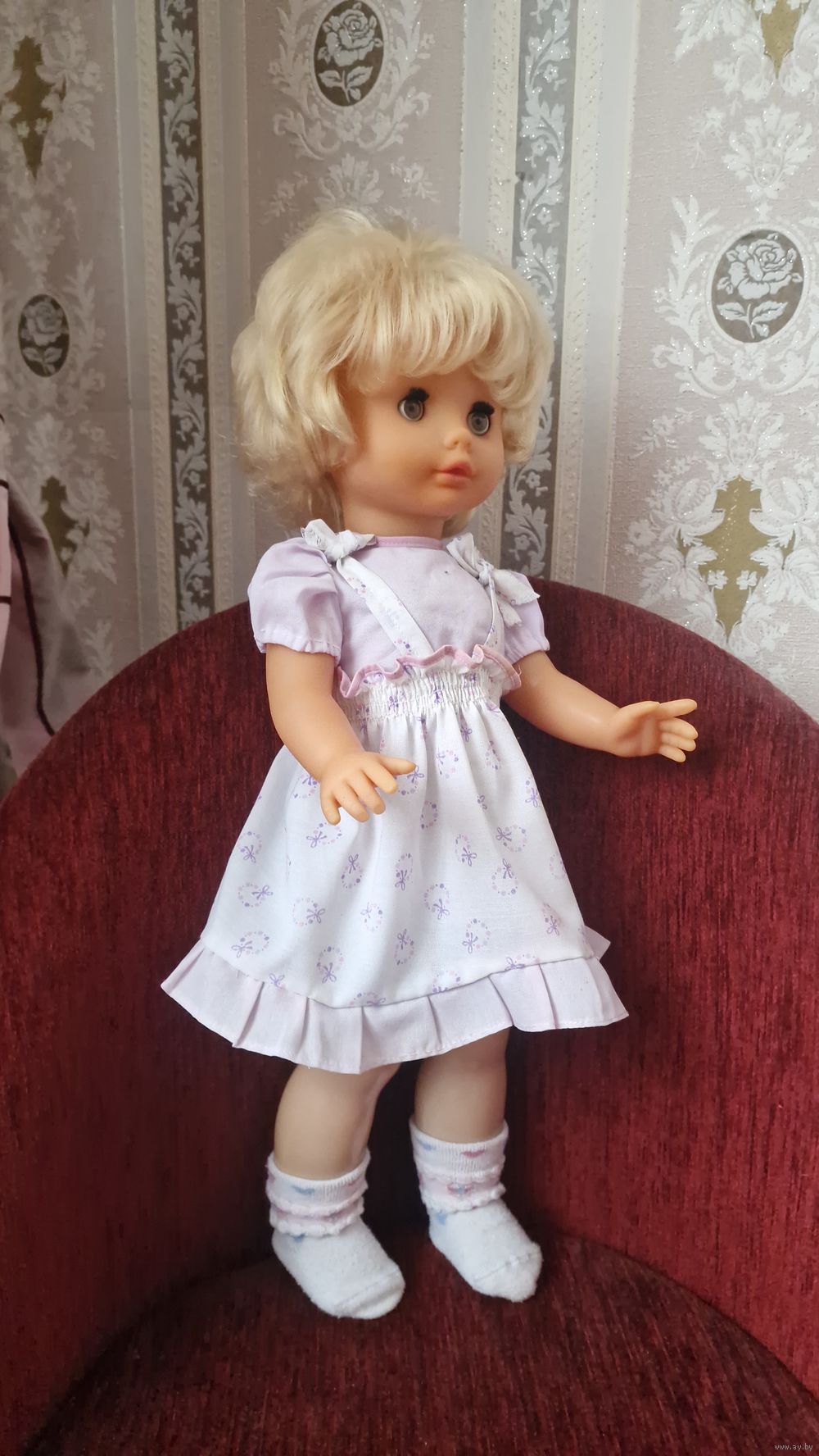 | Кукла пр-во ГДР 1985-90 г. выпуска. Одежда родная, туфелек нет. Тело и ноги твердый пластик. Руки и голова нечернеющий винилл. Отличное состояние без дефектов. 53 см рост | |