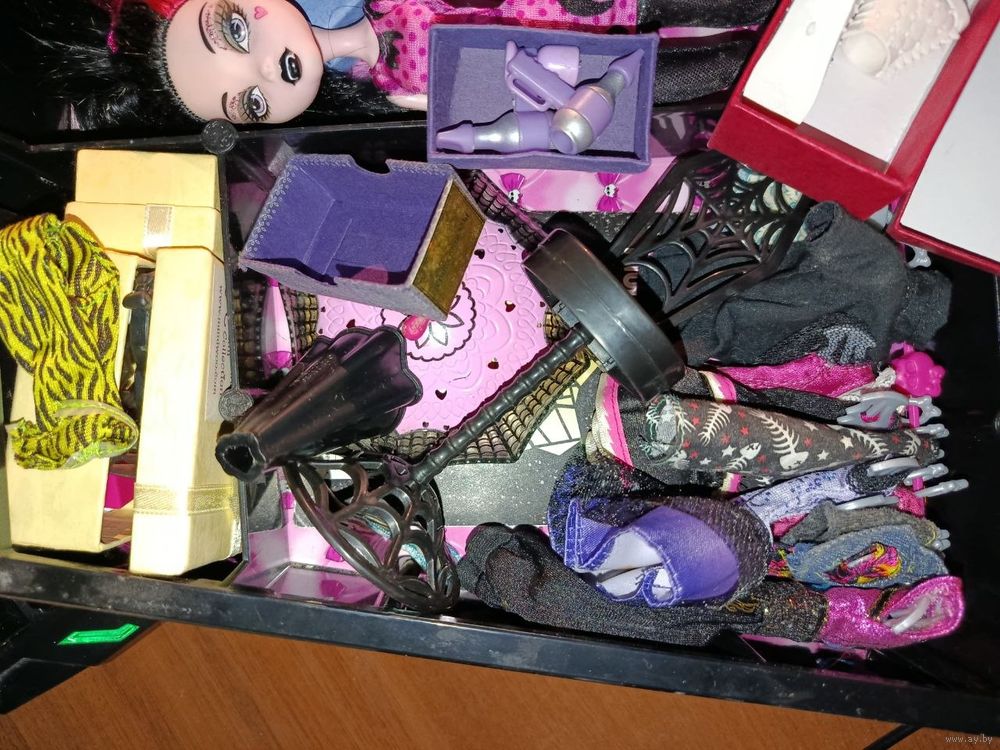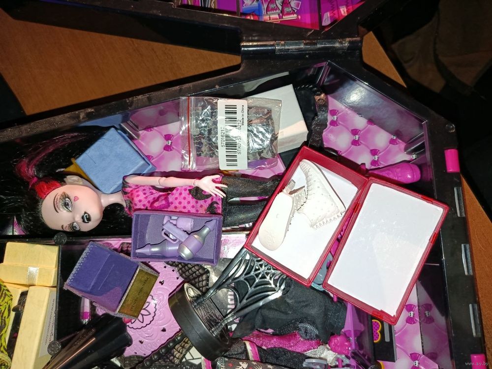 Полный набор. Сама кукла, коробки с обувью и одеждой , вешалка с одеждой и прочее, всё видно на фото. С момента покупки не трогалась.