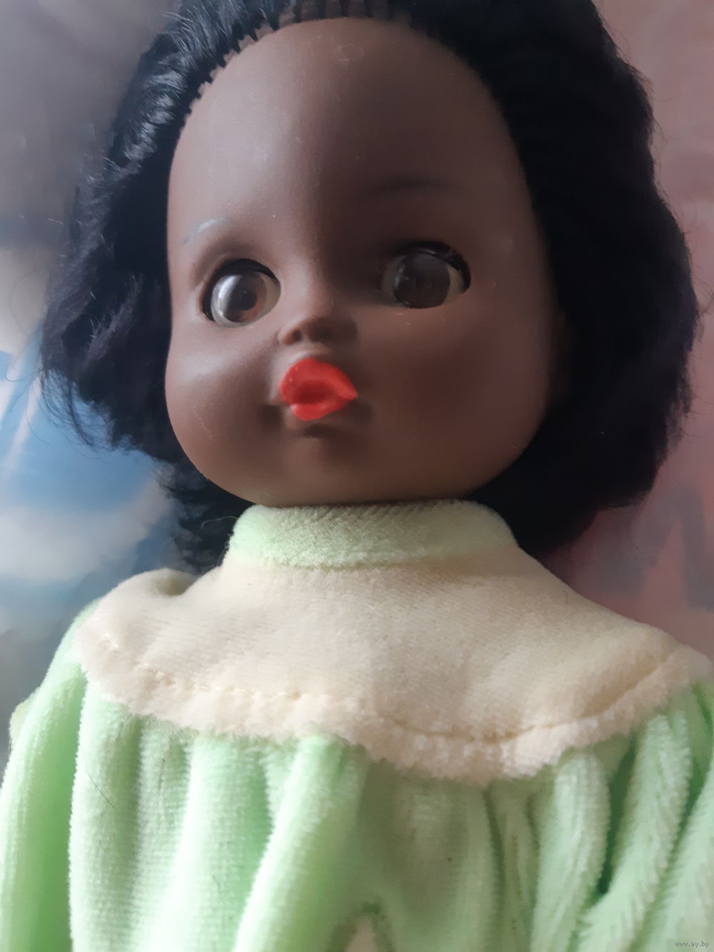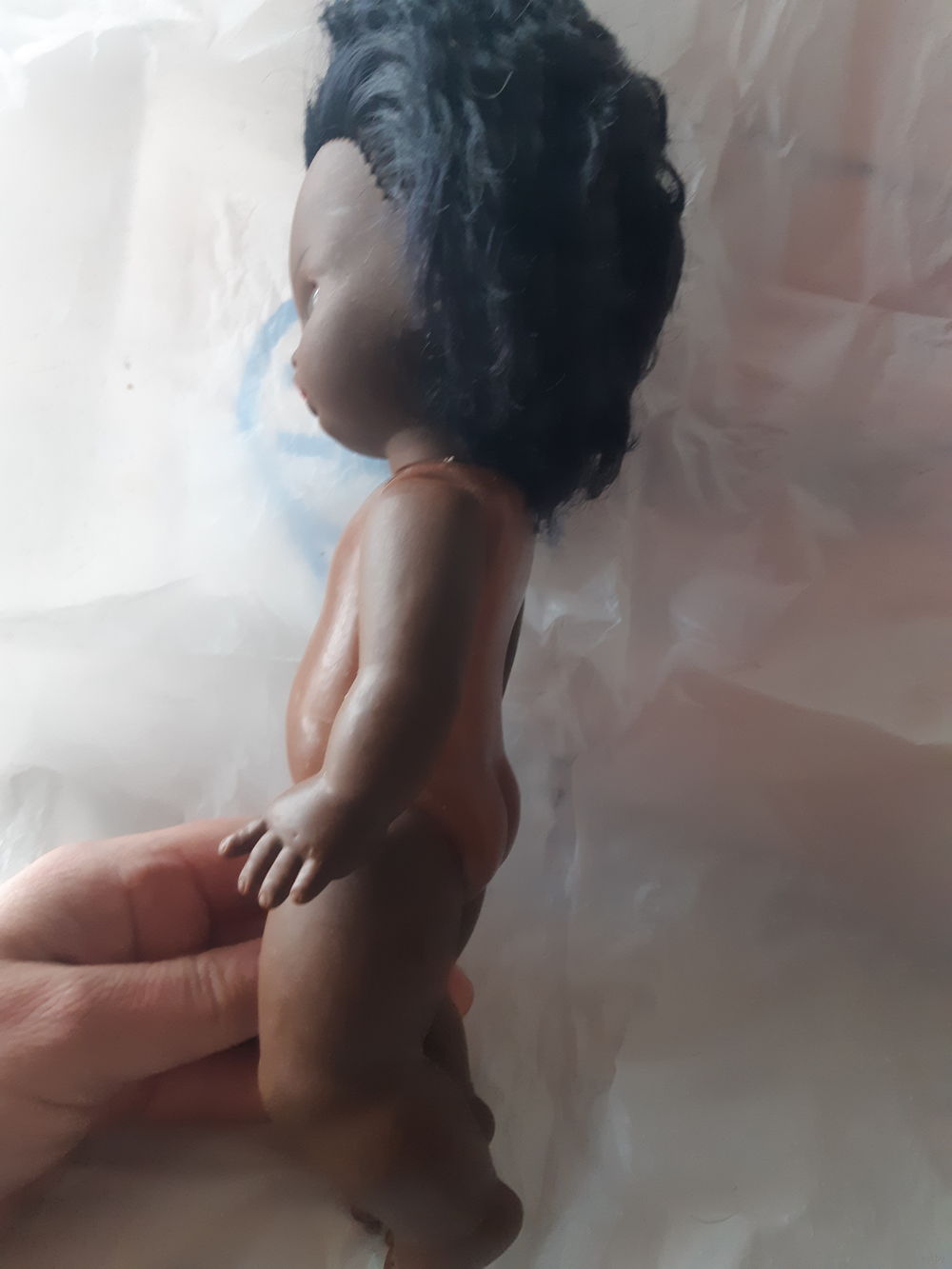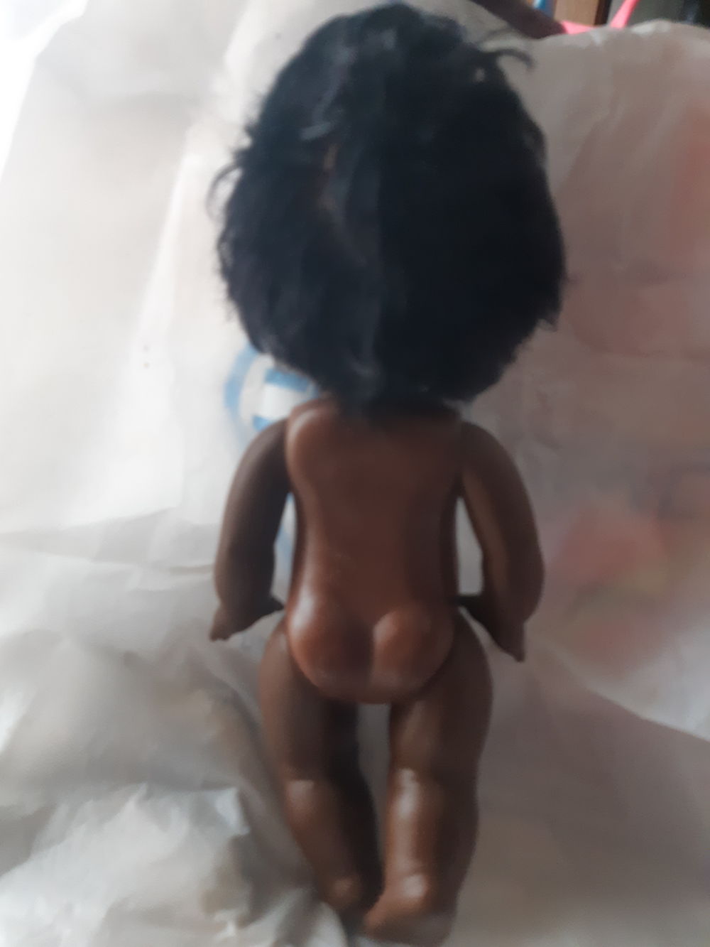 | 28 см, нет ресничек, глащки не западают, механизм хороший, есть несколько состриженных лунок, не "под корень" в целом хорошач куколка. Волос густой, диски без повреждений. | |