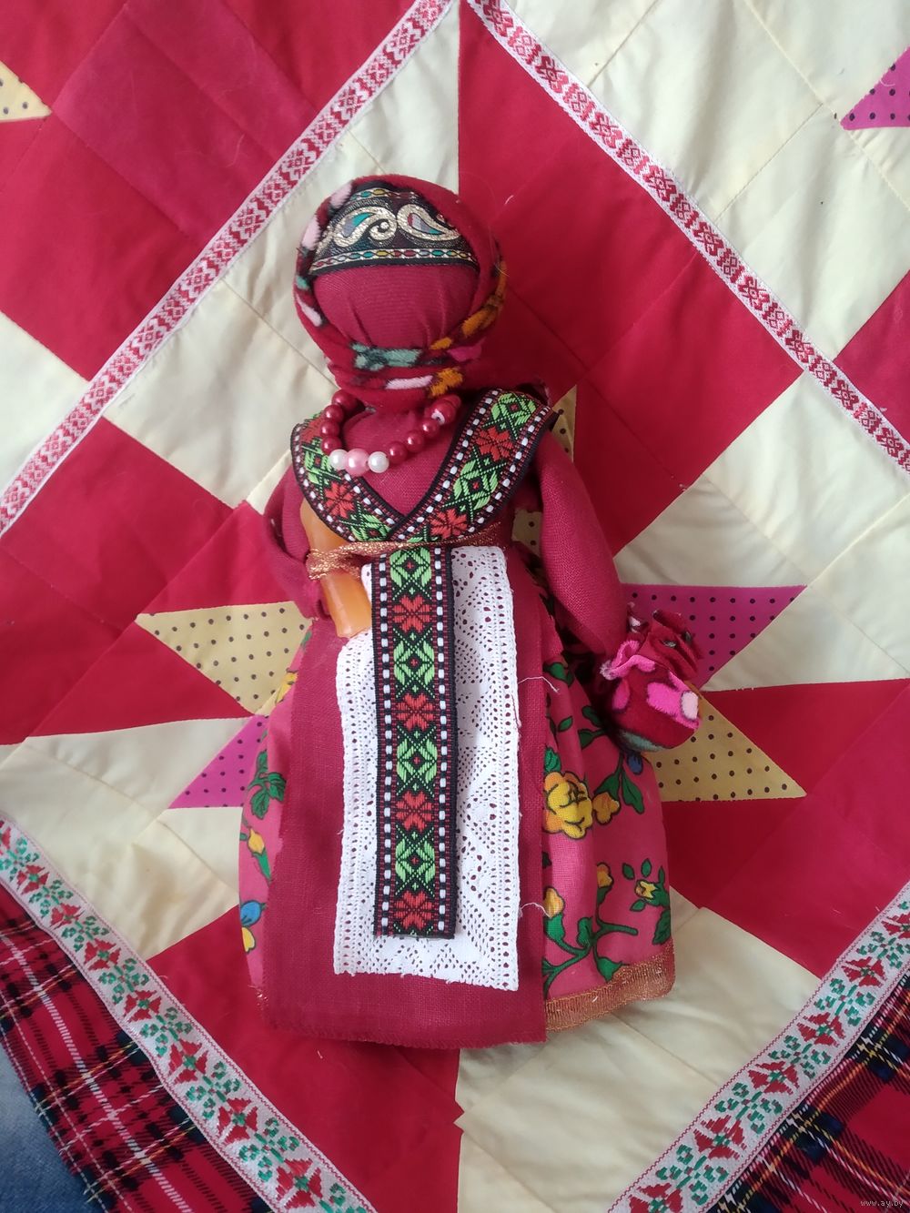 приравнять к росписи яиц. Пасхальная кукла символизирует радость,Именно как проводник радости она ставилась на окно и наряду с пасхами и крашеными яйцами дарилась близким. Кукла оберег "Пасха" привлекает в дом достаток, благополучие и счастье.