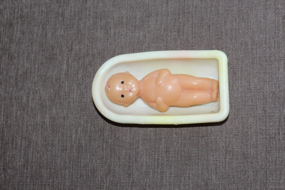 Кукла времён СССР, "Пупс в ванночке", небольшого размера, длина 11 см.