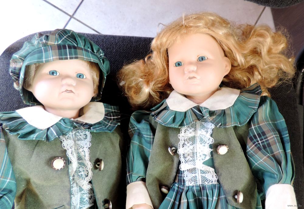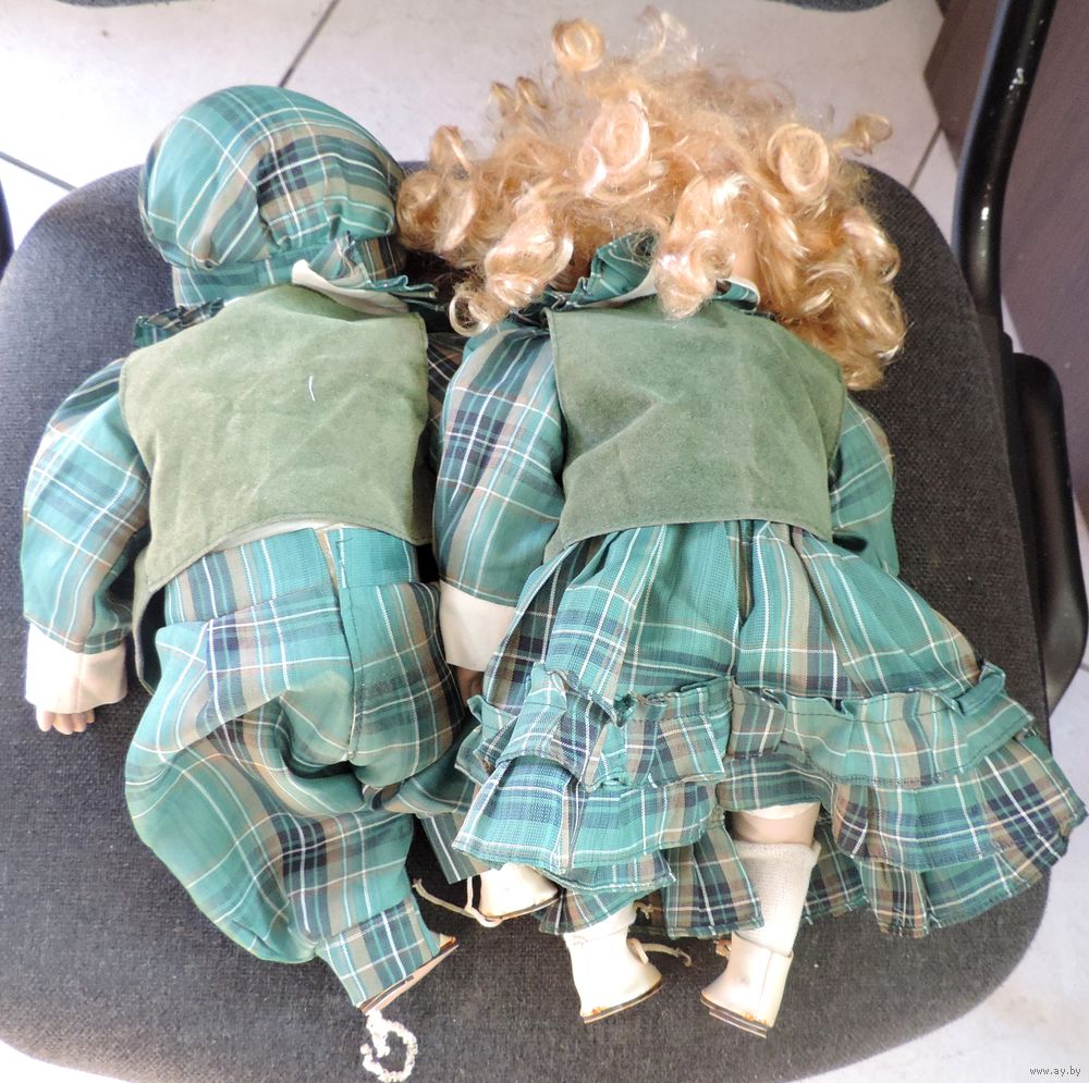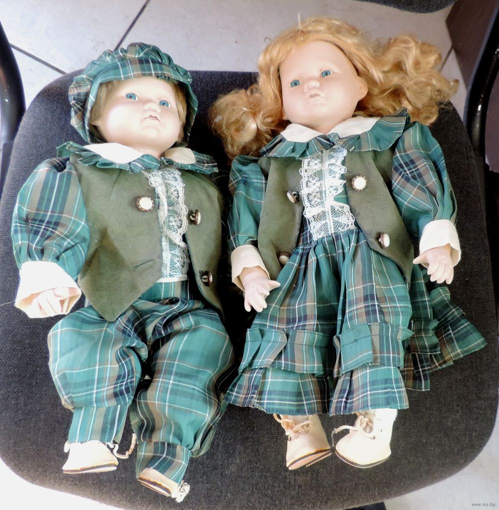 Куклы фарфоровые "Мальчик и девочка" 80-е годы Европа. Длина 34-35 см.