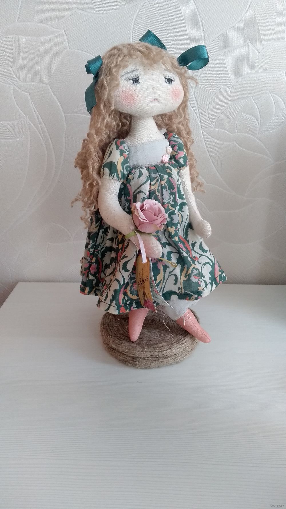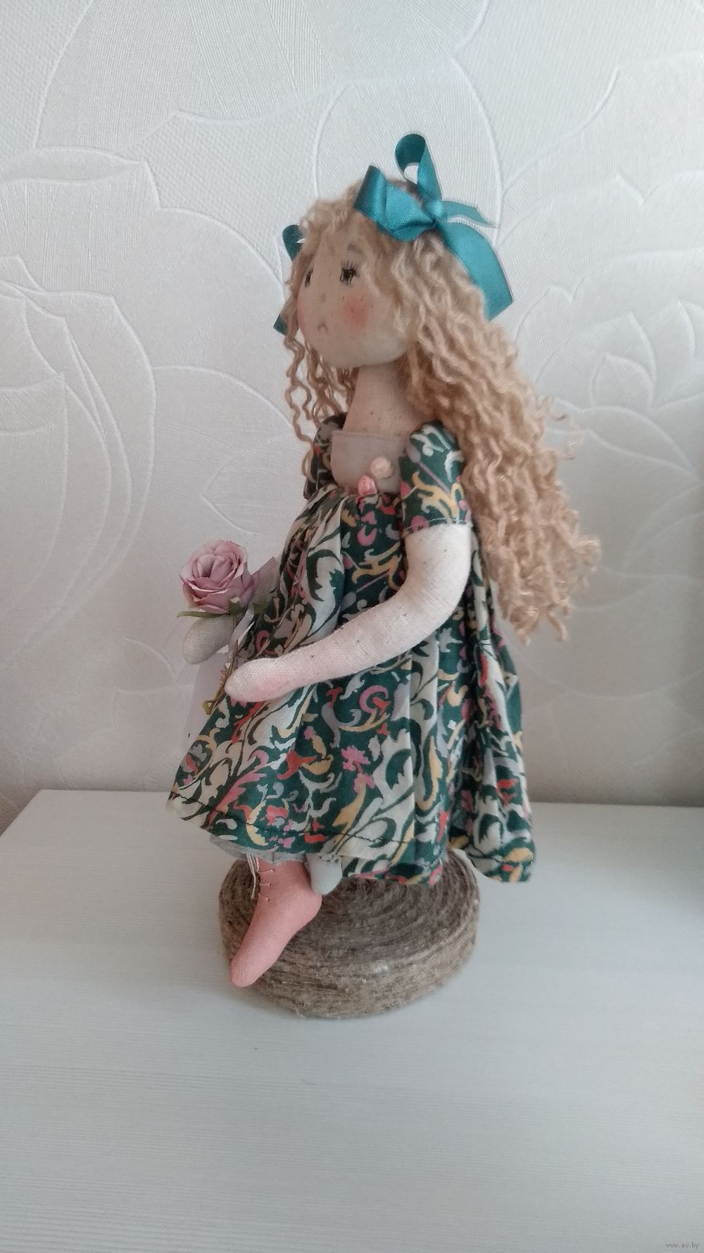 Куколка Джули фарфалетка ручной работы высота 32см сидит самостоятельно сшита из льна