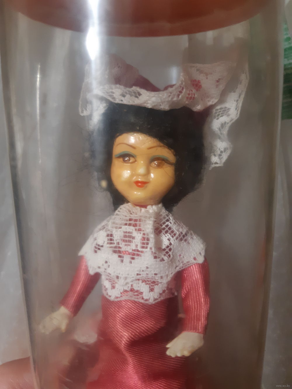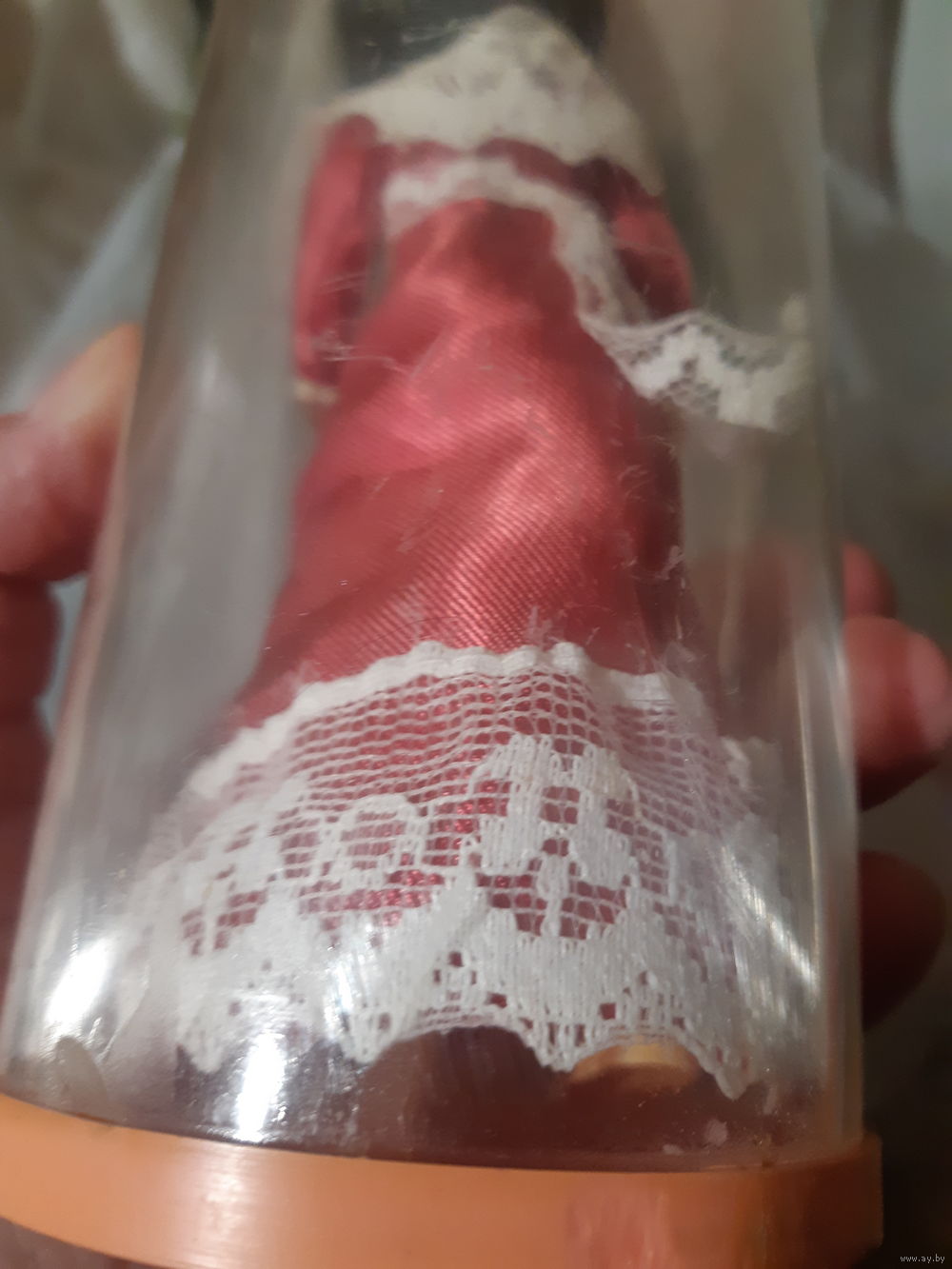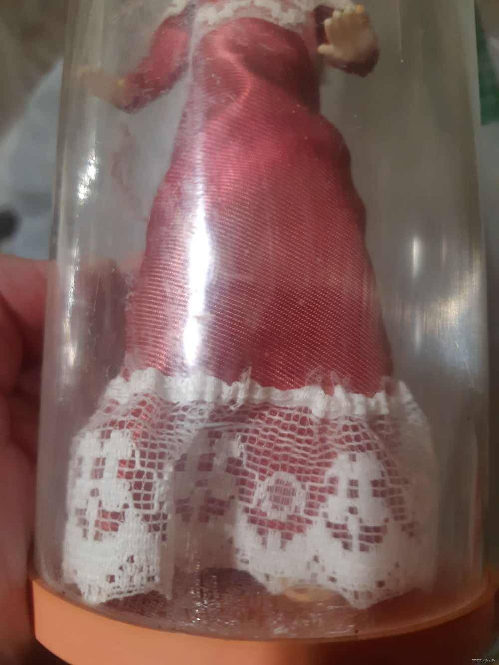 Сам тубус высотой примерно 19 см. Куколка из колкого пластика, крышечка приклеена, не достаю. Одна ножка приклеена к основанию,видимо, вторая чуть повыше, но ничего не подомано, осколков нет. Интересная, всё родное у нее.