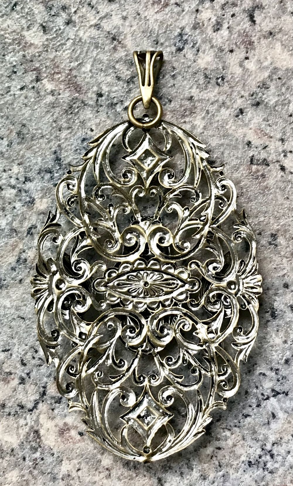Крупный кулон из латуни с серебрением (местами незначительные потёртости на металле) и вставками из худ.стекла под лазурит. Чехословакия до 60-х гг. Египетская тема. Высота с петлей 8см., ширина 4,5см. Состояние хорошее.