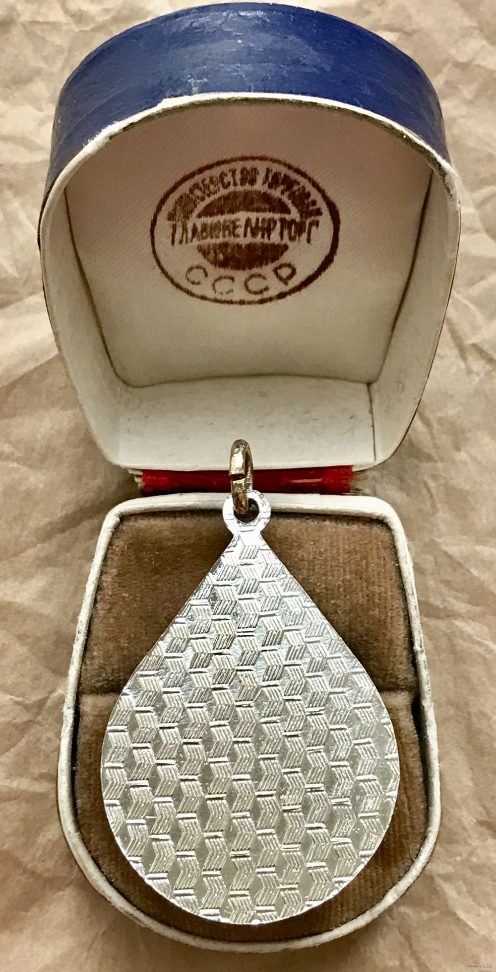 Винтажный кулон с основой из металла золотистого тона, вставка из глушеного стекла. Высота кулона с петлей 5см., размер вставки 3,2х2,3см. На петле есть потёртости позолоты. Общее состояние хорошее.