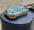 Винтажный кулон из стекла чёрного цвета с фиолетовым отливом в латунной оправе, на лицевой стороне гравировка. Высота кулона с петлей 4см., ширина 2см., толщина 0,4см. Состояние хорошее.