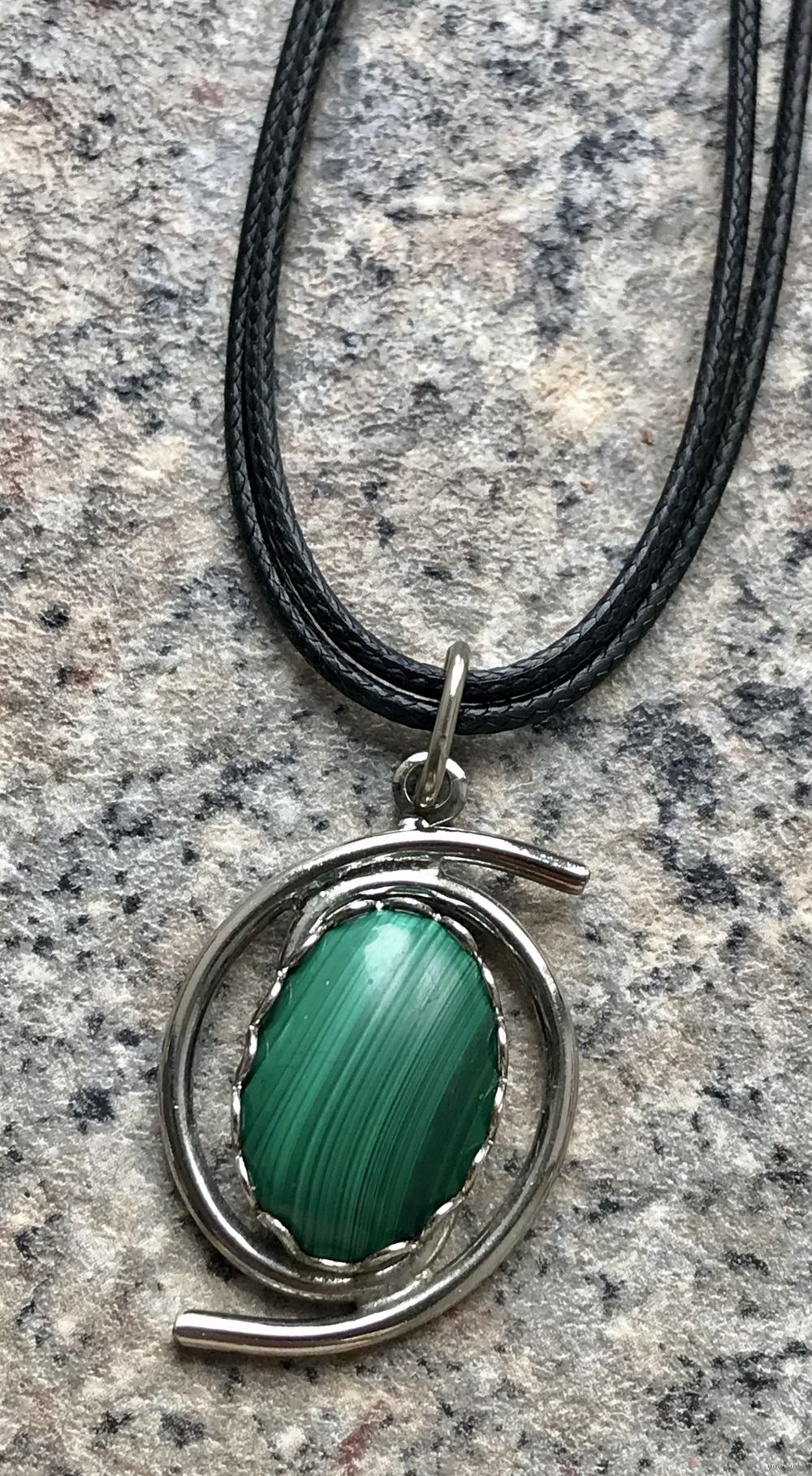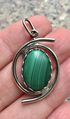 Винтажный кулон из металла с серебрением и малахитовой вставкой. Высота с петлей 4см., размер вставки 1,6х1см. Состояние хорошее.