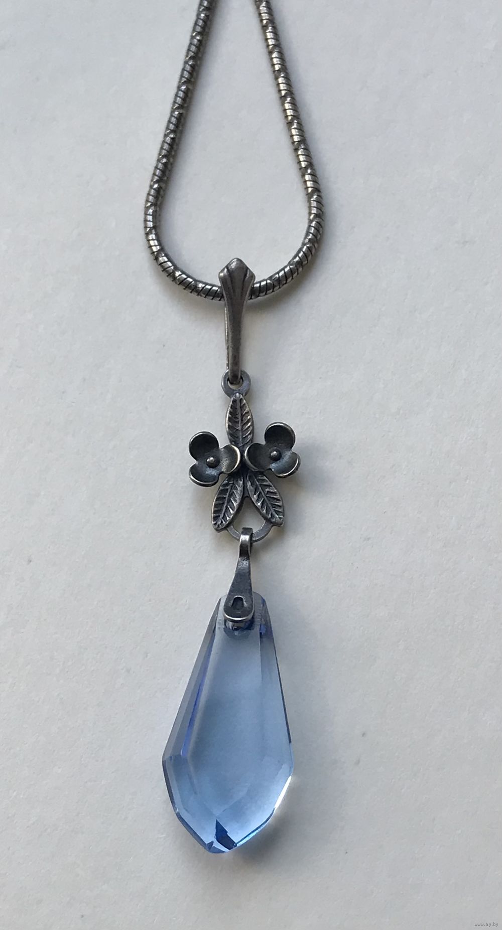 Винтажный кулон из мельхиора и юв.стекла. Красная Пресня. Высота кулона с петлей 5,5см., размер вставки 2,3х1,2см. Состояние хорошее. В лотах есть такие же серьги.
