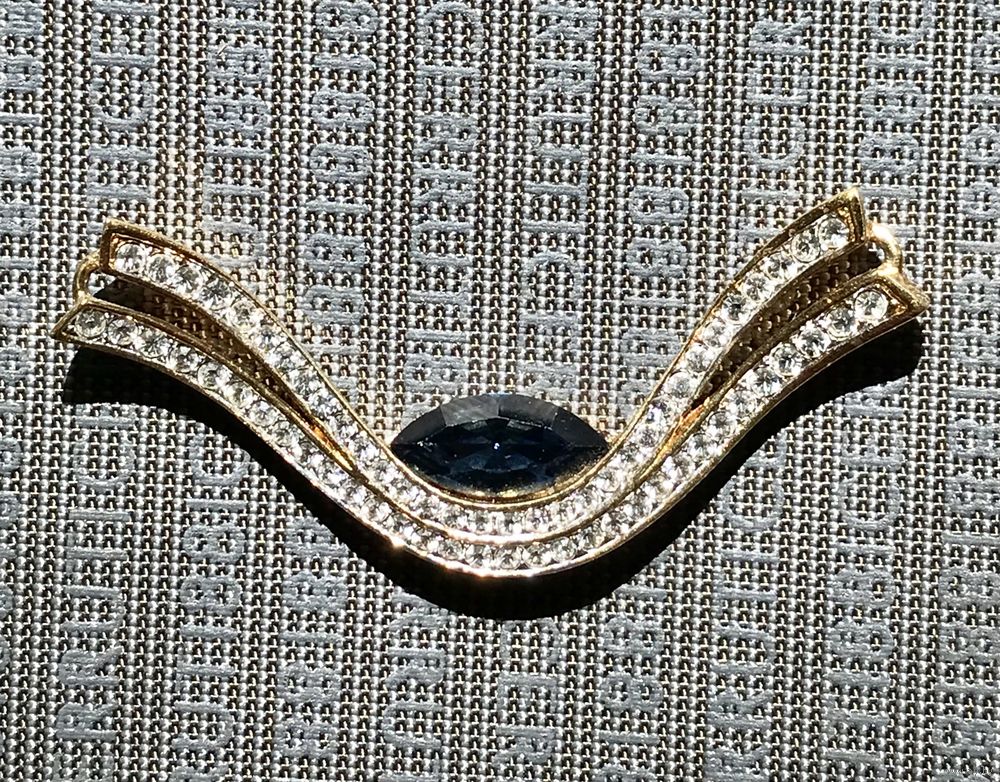 Винтажный кулон от известной британской компании Attwood&Sawyer. Дизайнеры A&S вдохновлялись украшениями из коллекции герцогини Виндзорской, создавали их интерпретации и копии. Данный кулон изготовлен из бижутерного сплава золотого тона, лицевая сторона украшения кристаллами сваровски. Размер 5,8х1,2см., на обратной стороне имеются незначительные потёртости на металле. Кулон маркирован.
