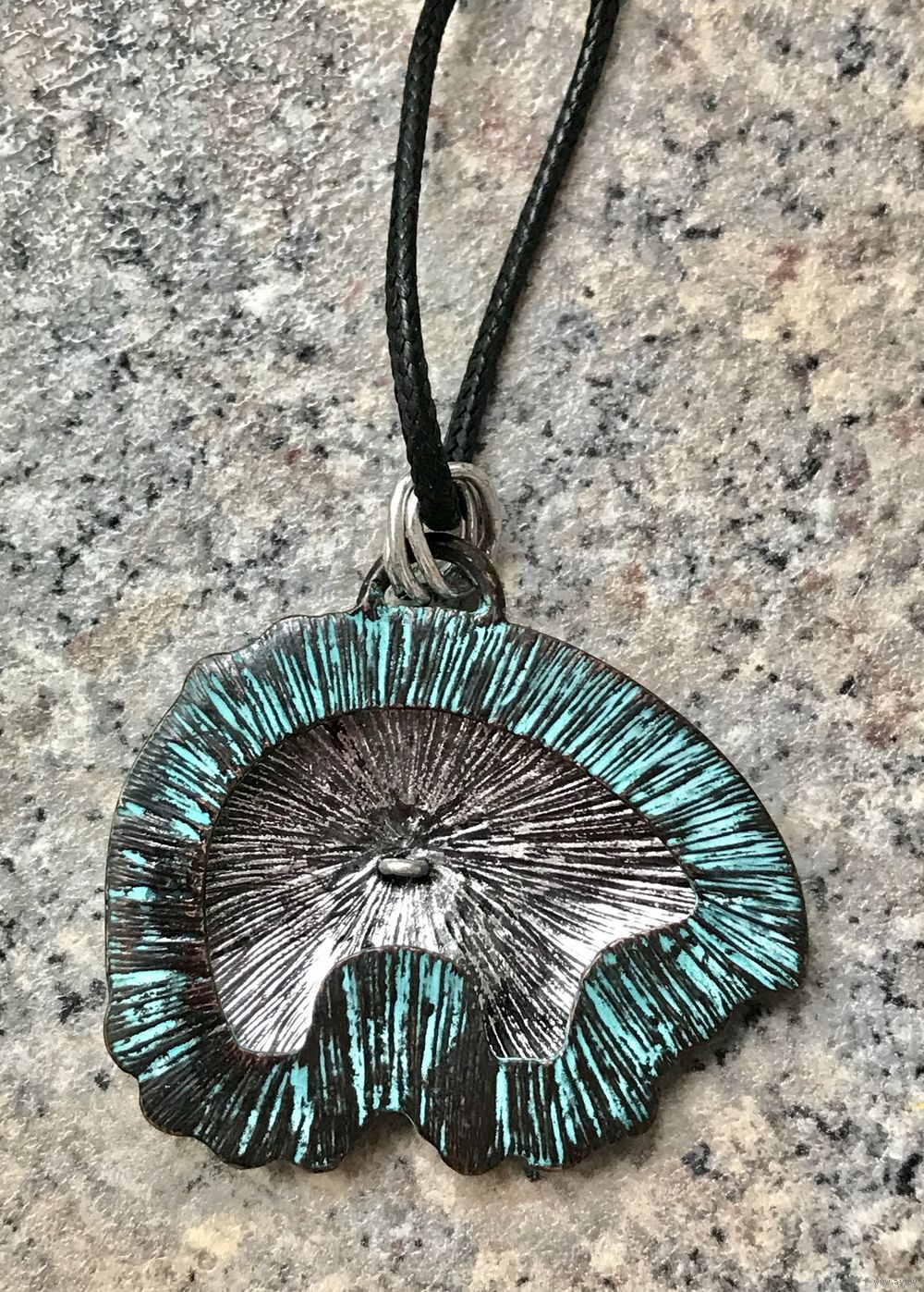 Крупный кулон из металла в стиле мастеров племени Navajo. Высота с петлей 4,7см., размер медведя 4,5х3,5см., длина шнурка 40см. На металле имеются незначительные потёртости.