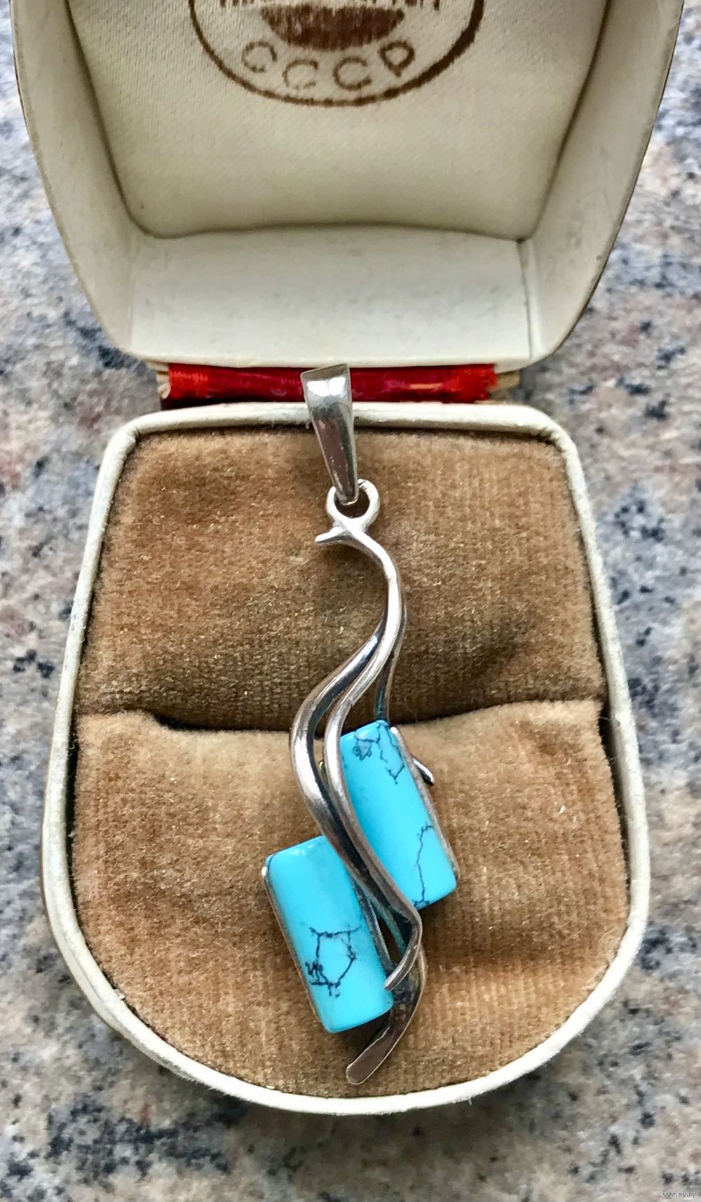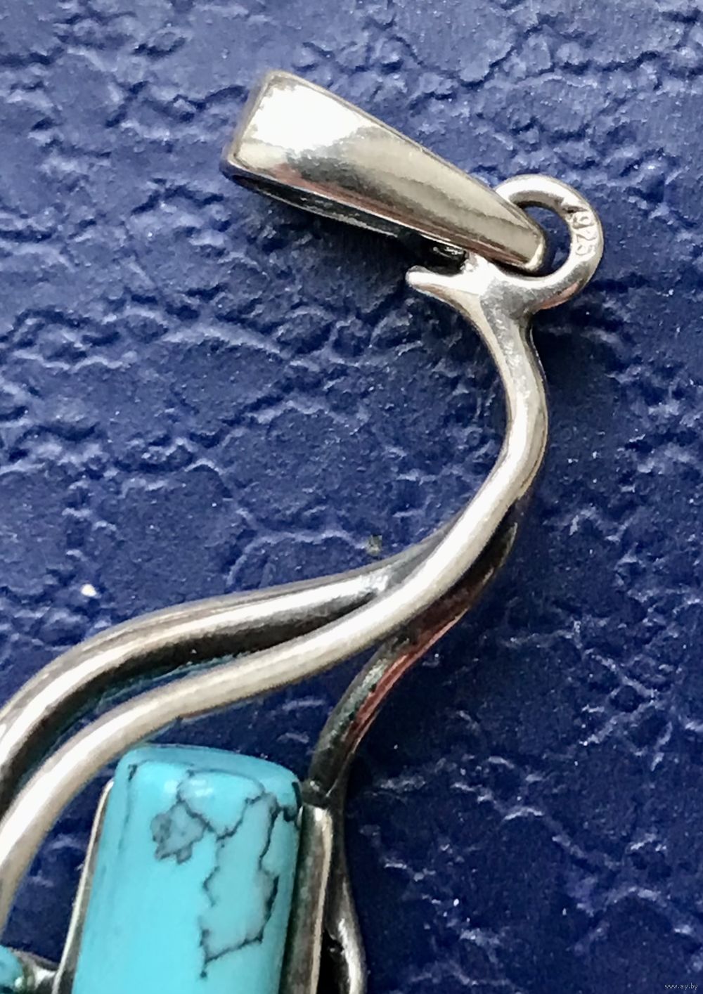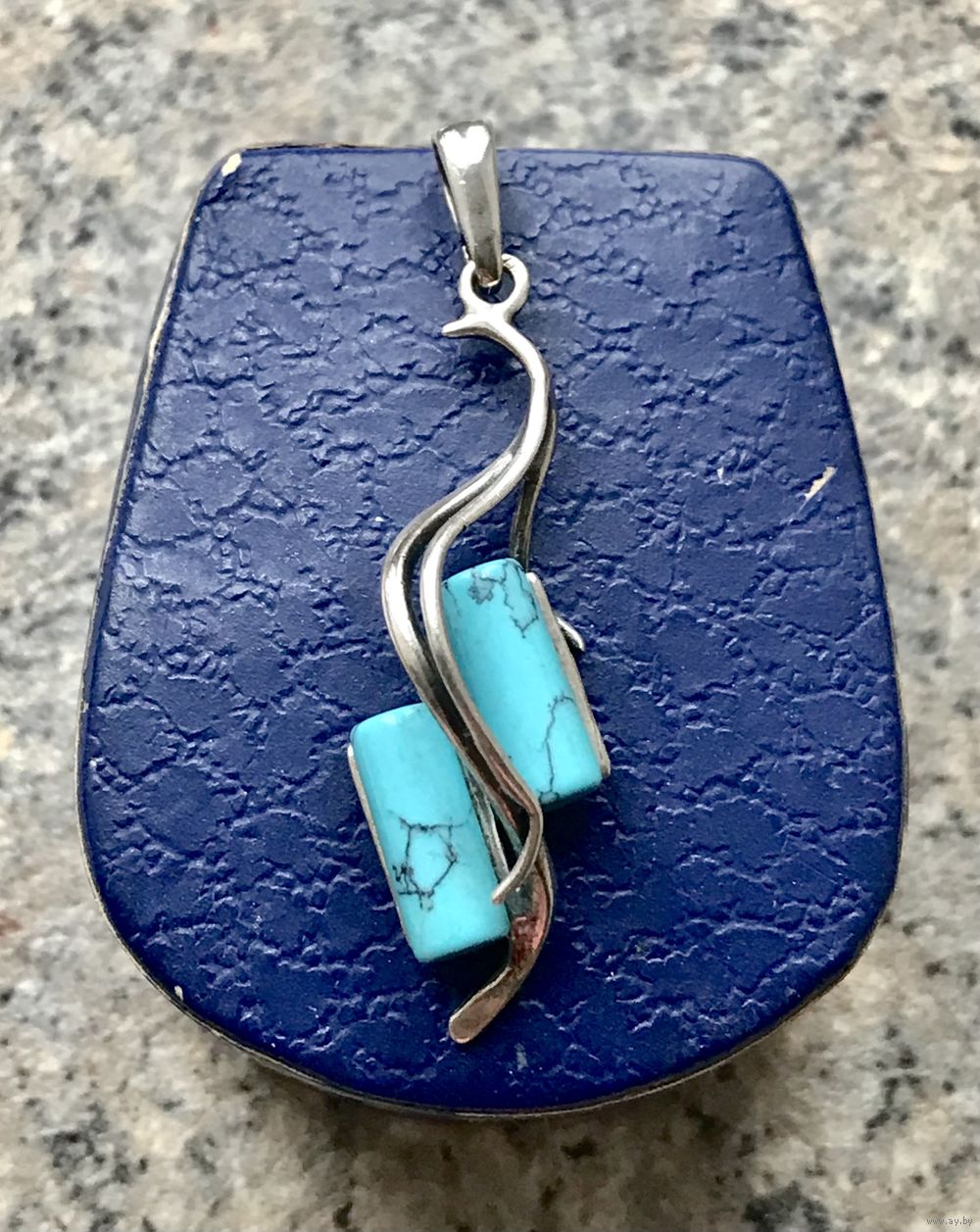 Кулон из серебра 925пр. и вставок из стекла под бирюзу. Высота кулона с петлей 4,8см. Состояние хорошее.