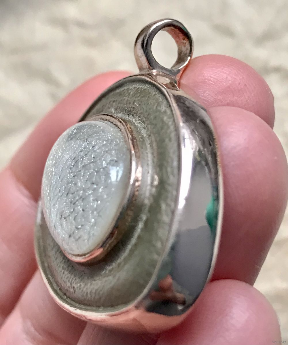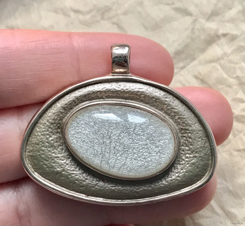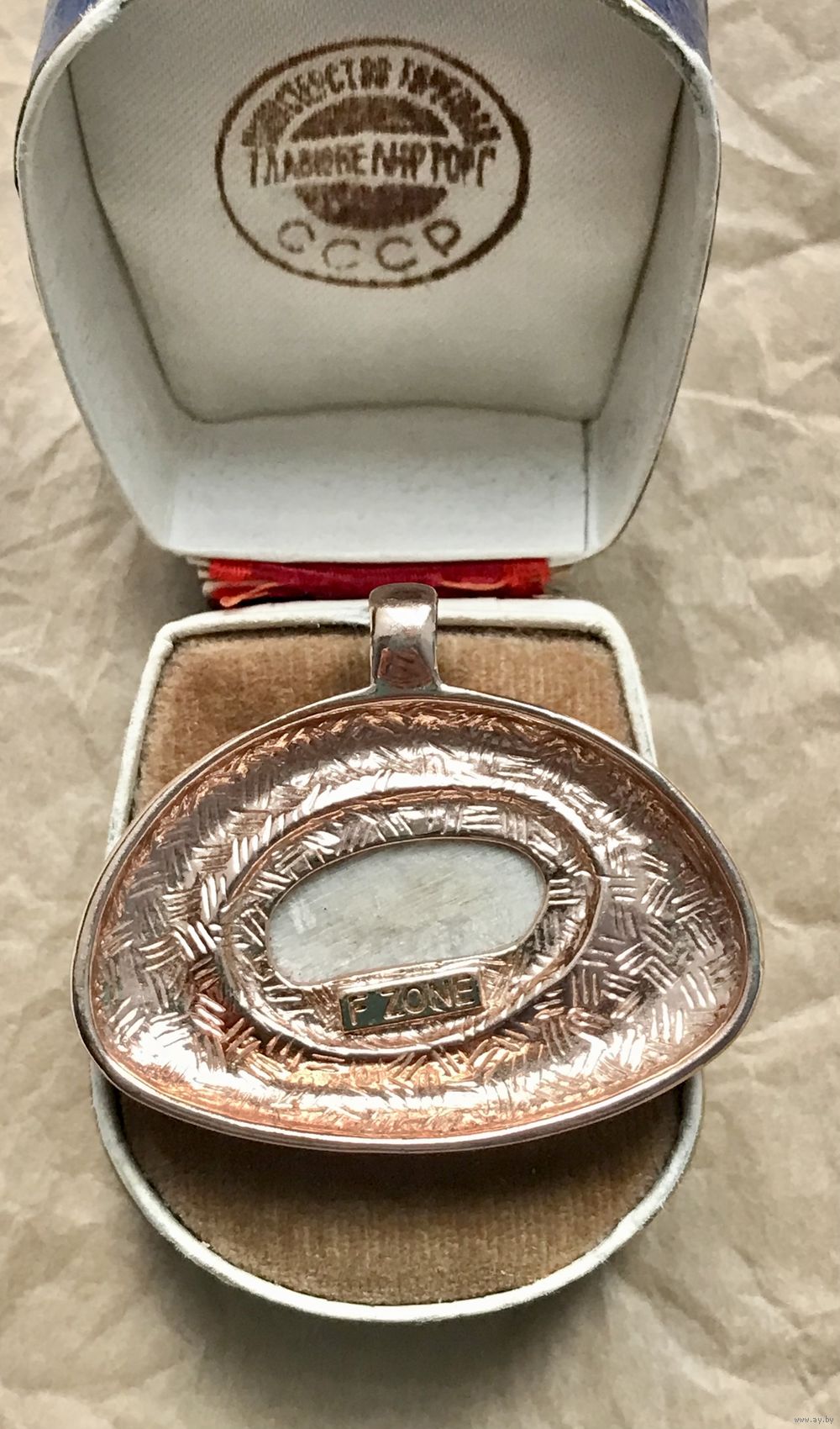 Кулон из металла золотого тона, вставка из пластика. На металле местами небольшие потёртости. Высота кулона с петлей 3,7см., ширина 4,5см.