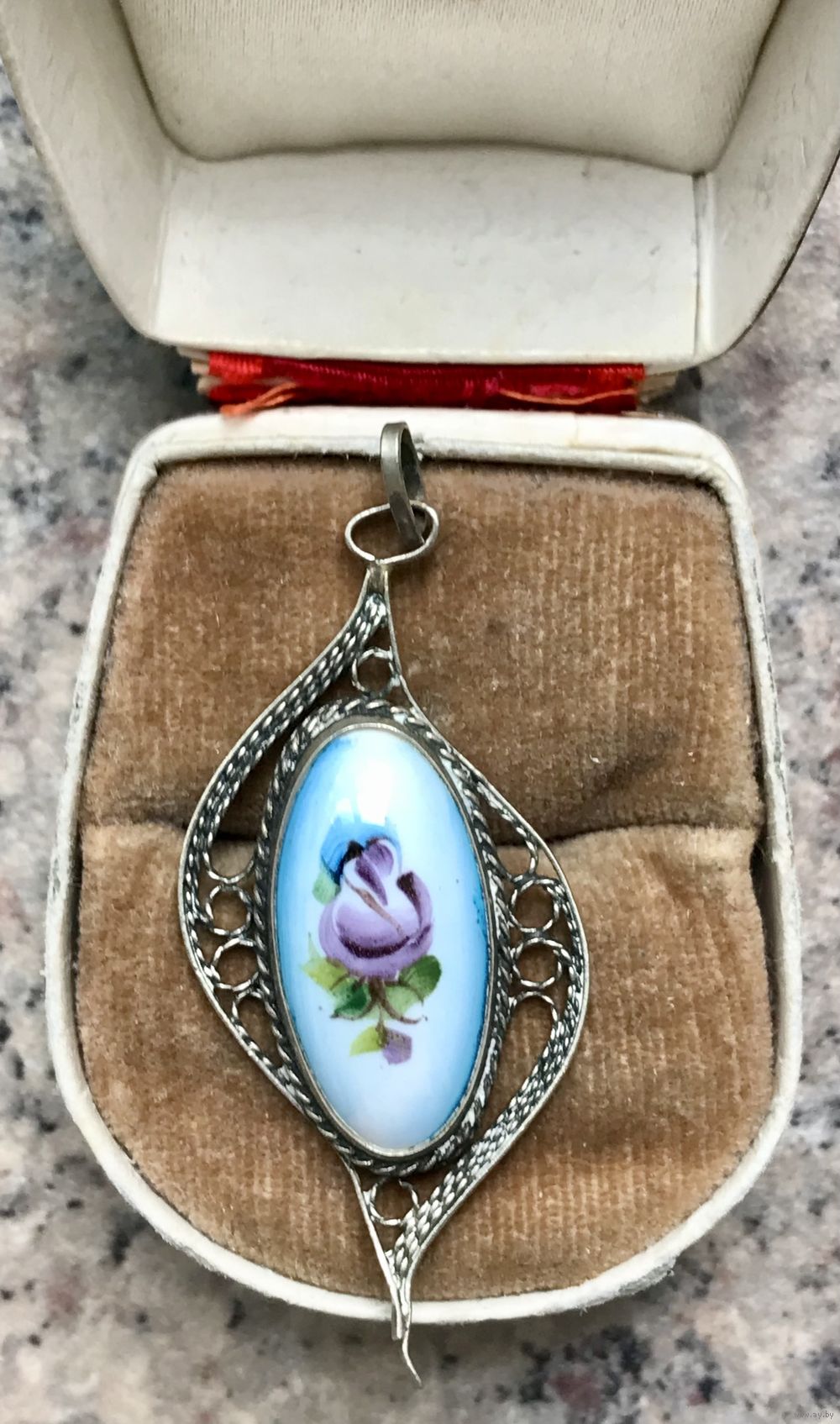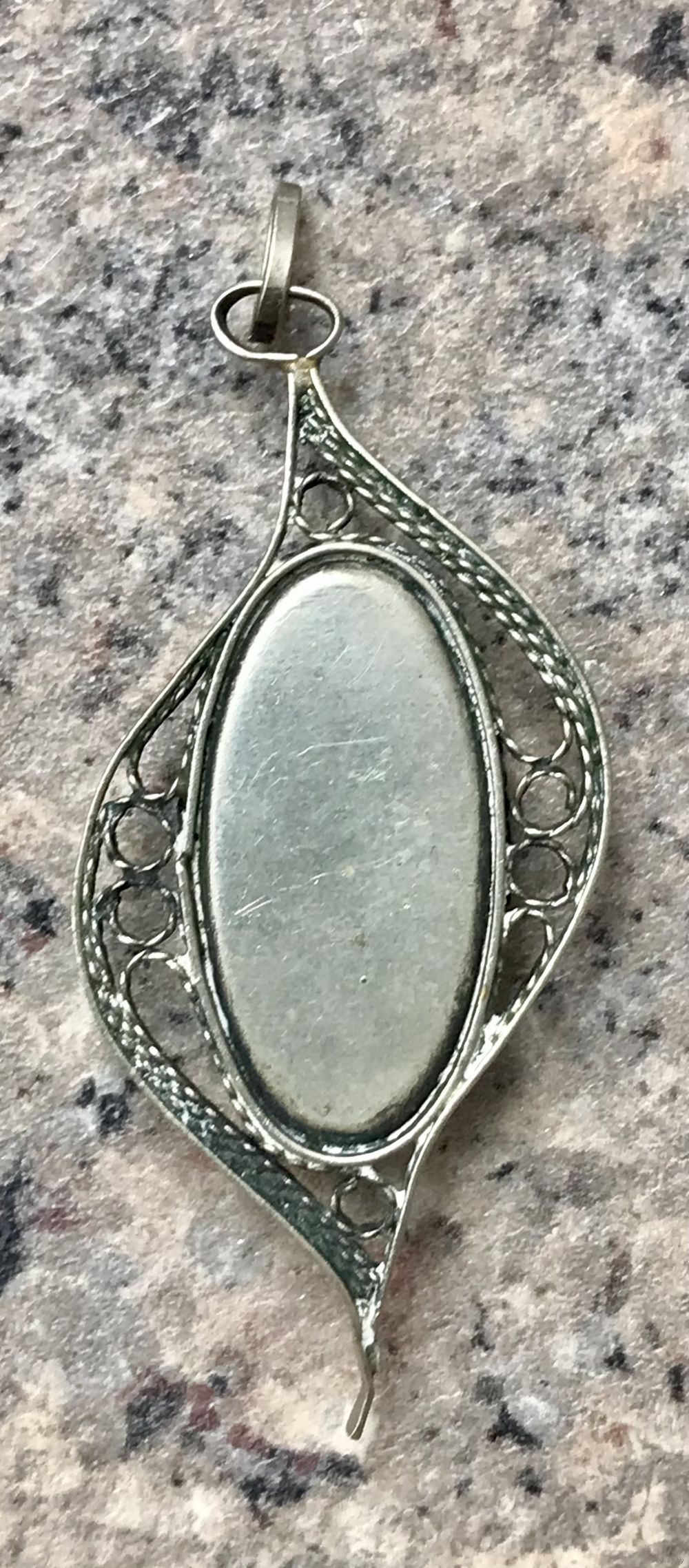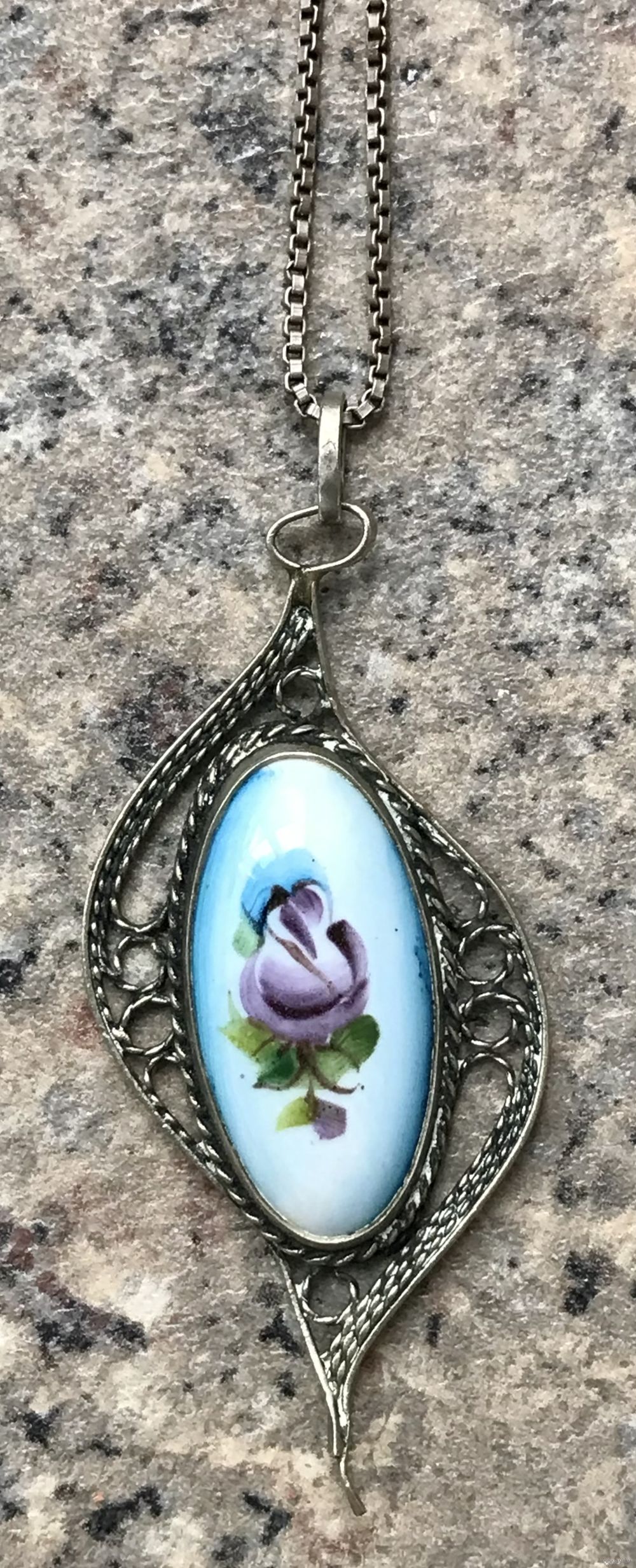 Винтажный кулон из мельхиора со вставкой финифти. Высота с петлей 5см., ширина 2см., размер вставки 2,2х0,5см.