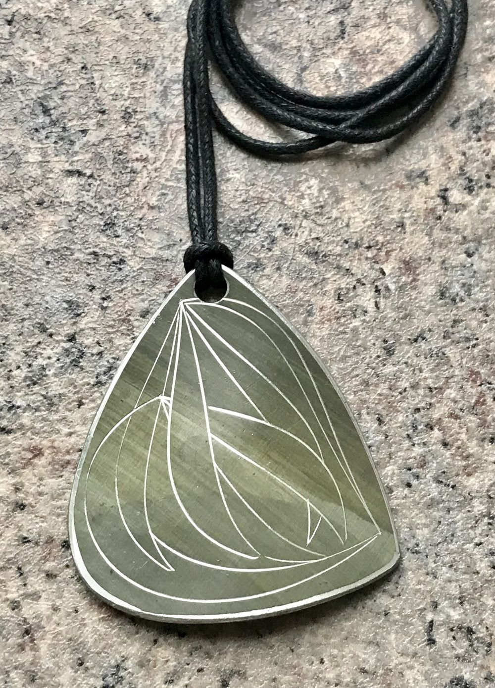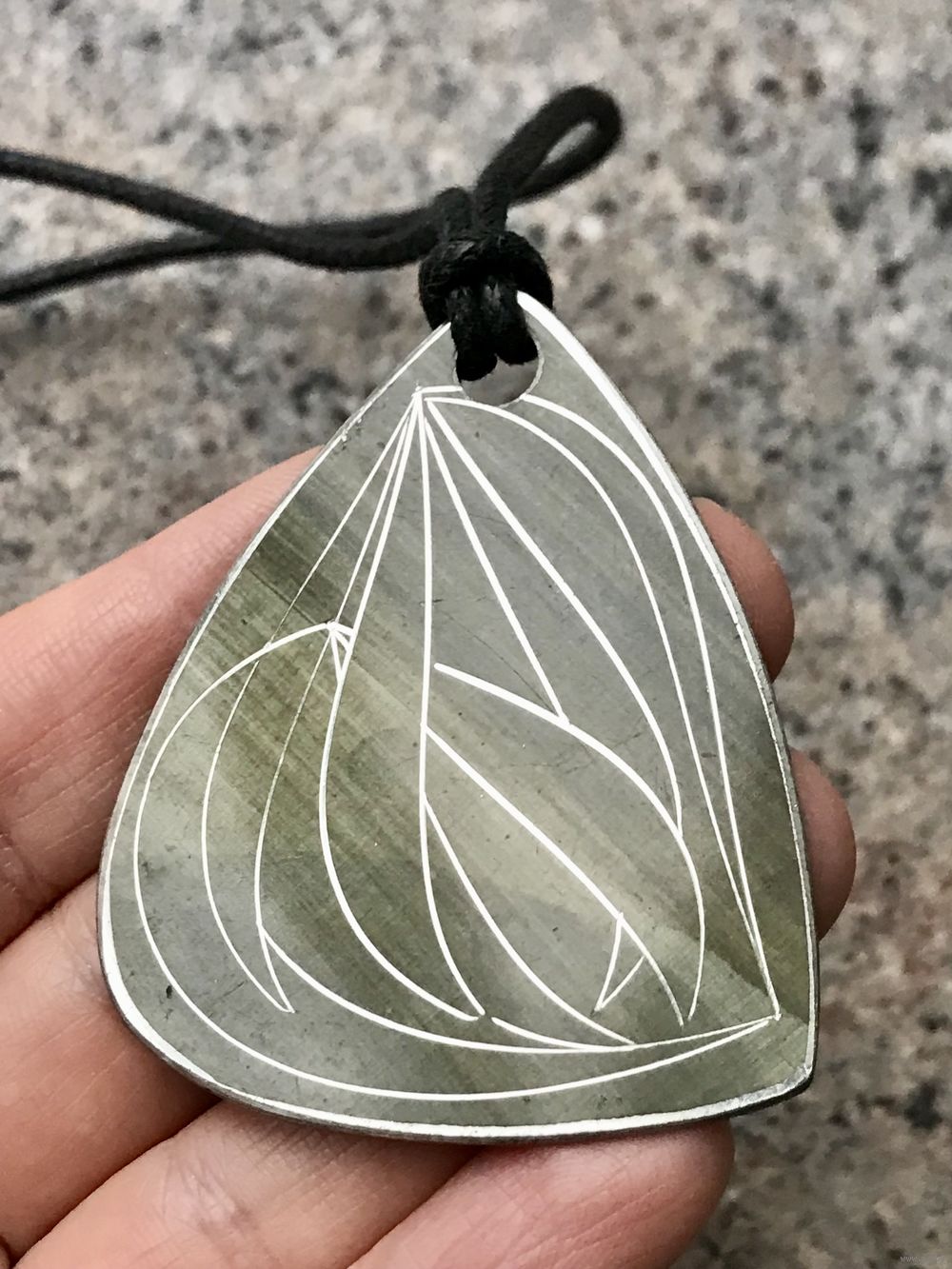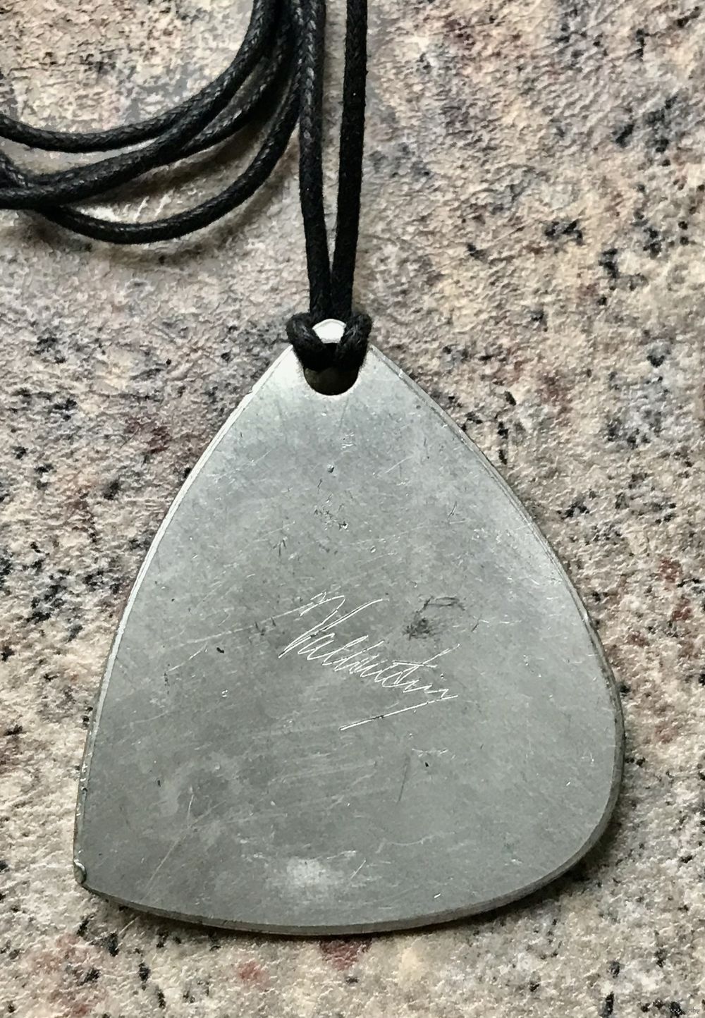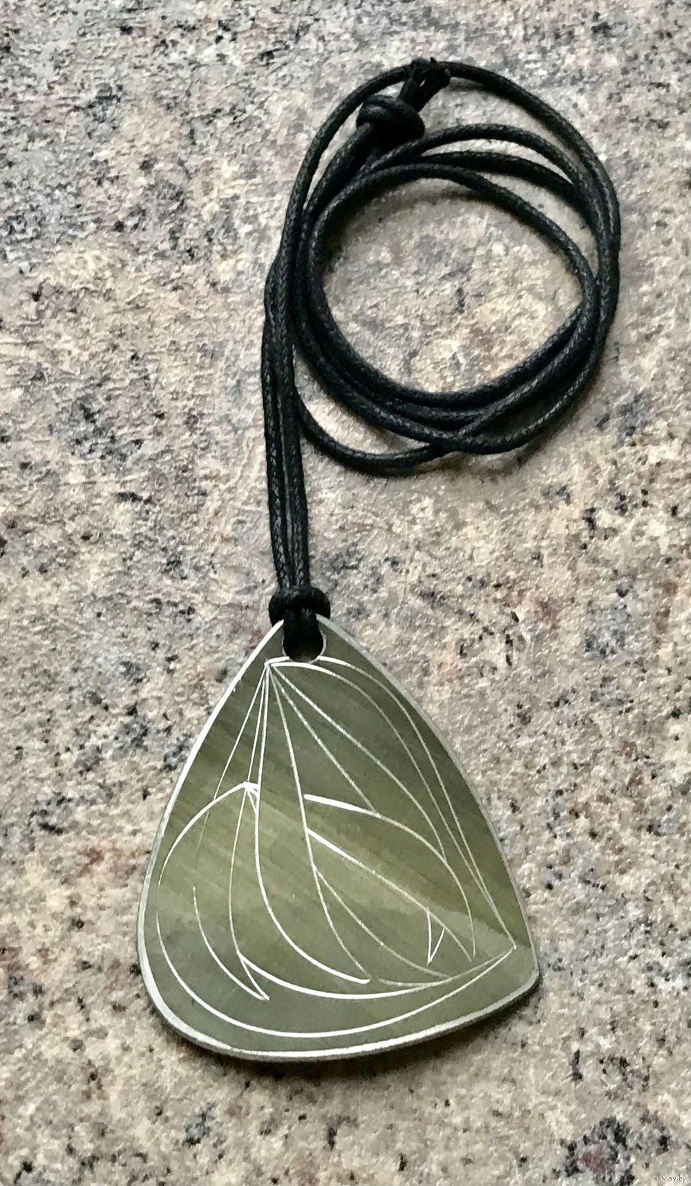 Авторский кулон из металла серебристого тона, лицевая сторона украшена эмалью. Размер кулона 5,3х4,5см., длина шнурка 68см. Состояние хорошее.