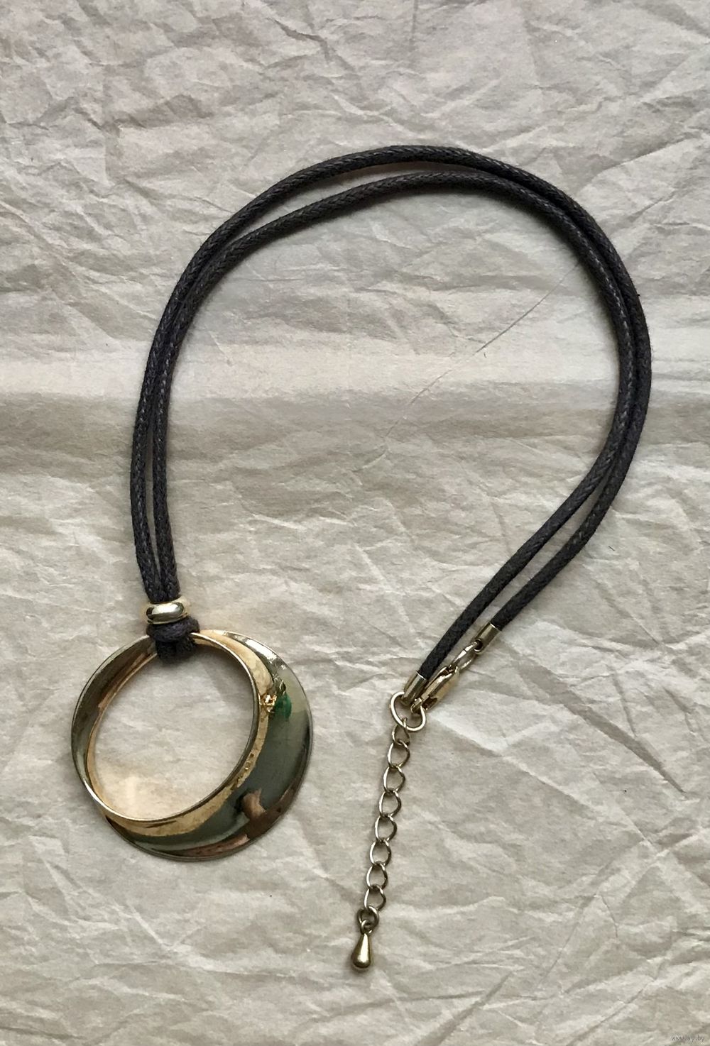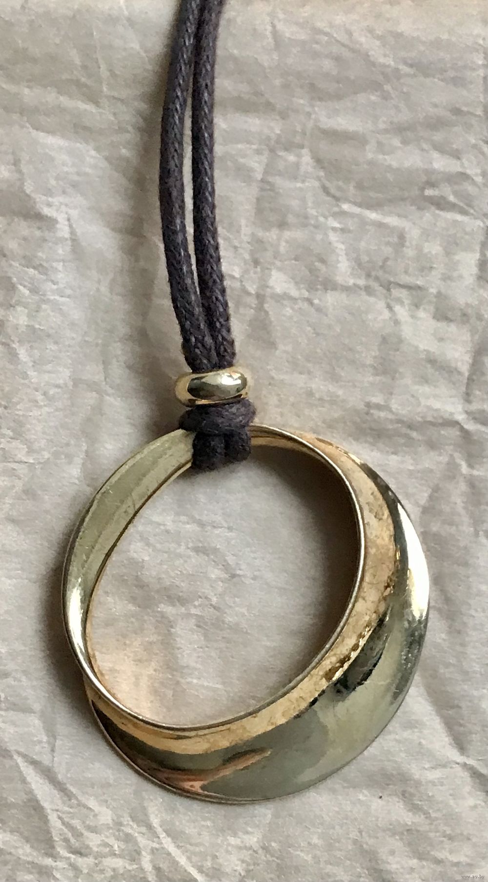 Кулон из металла золотого тона на текстильном шнурке. Размер кулона 3,5х3,7см., длина шнурка 40см.+3см.доп.цепочка. Состояние хорошее.