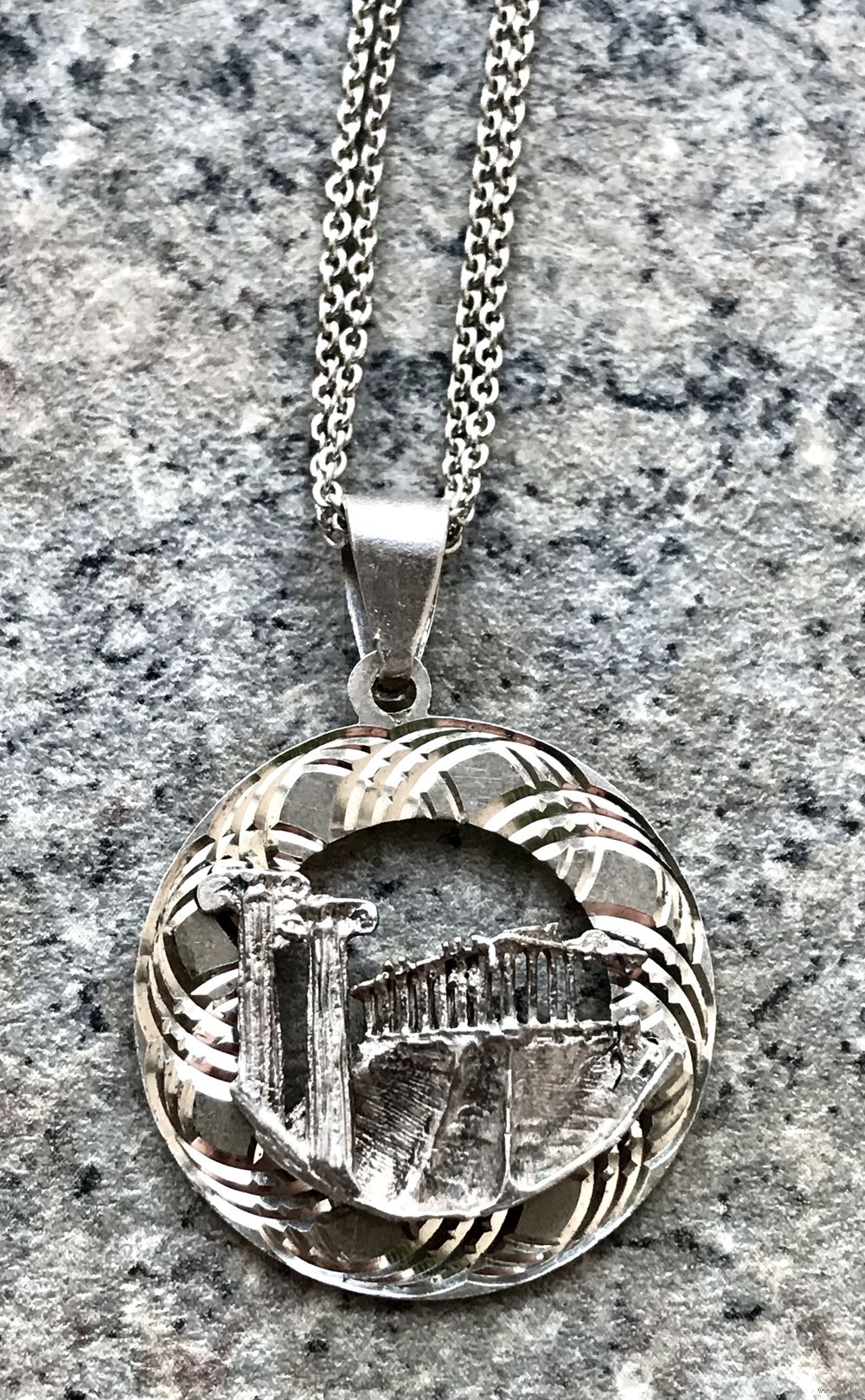 Кулон из серебра 925 пробы. Высота с петлей 3,5см., диаметр подвески 2,6см. Вес 4гр. Состояние хорошее.