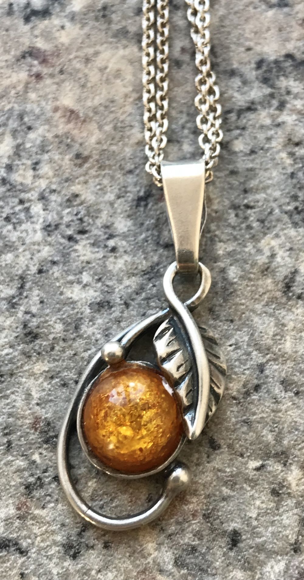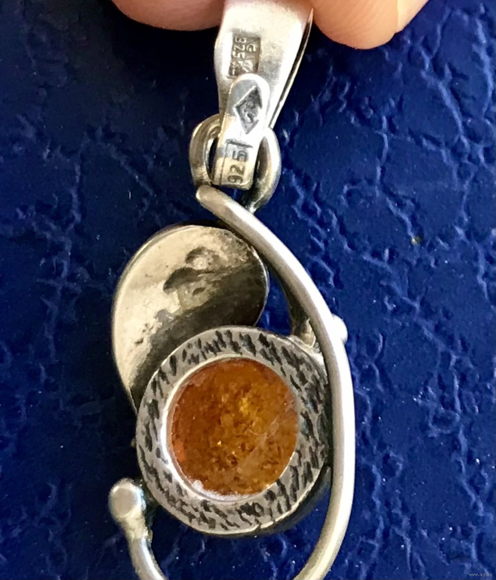 Винтажный кулон из серебра 925пр., вставка кабошон янтаря (пресс). Высота кулона с петлей 3см., диаметр вставки 0,8см. Состояние хорошее.