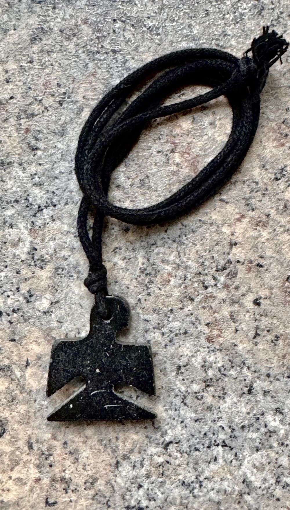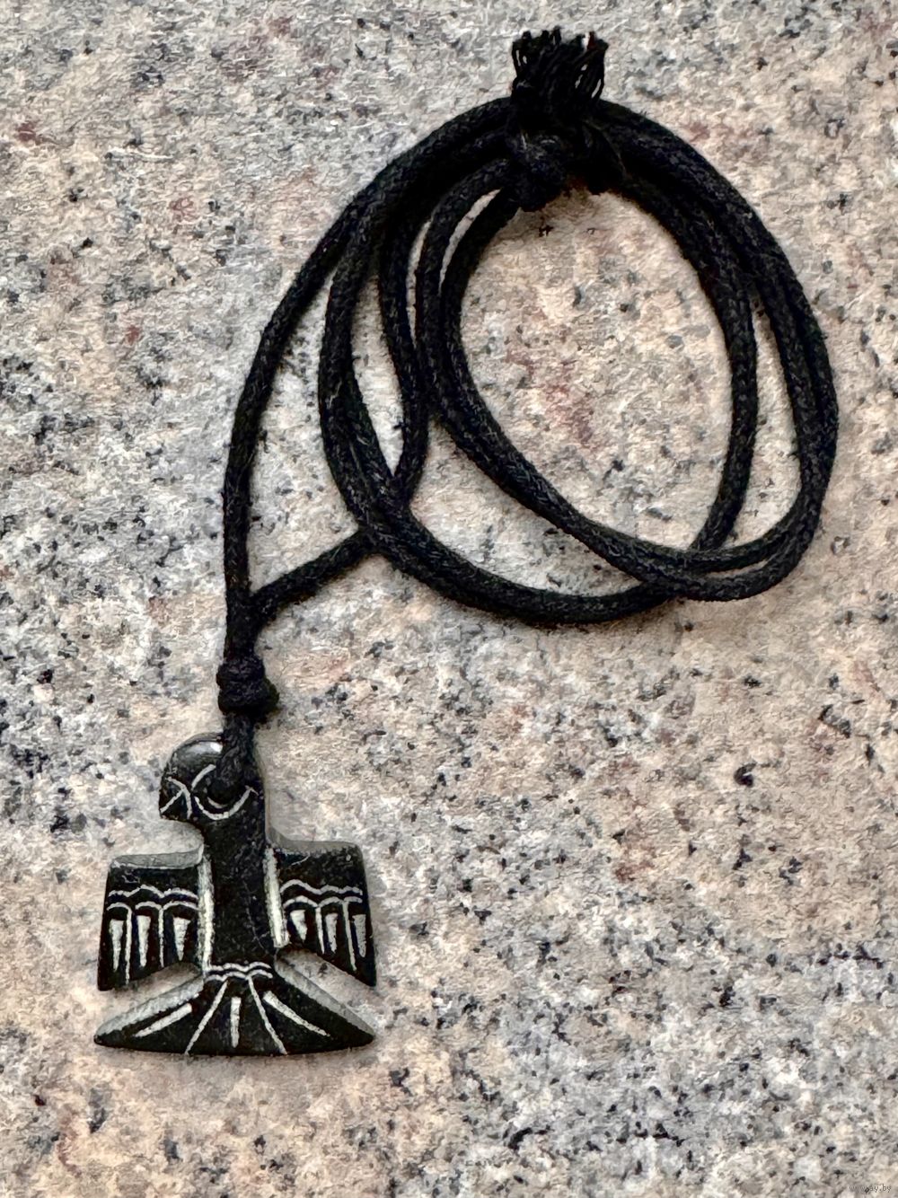 Винтажный кулон из камня (скорее всего из базальта) на хлопковом шнурке. Размер кулона 3х2,8см., длина шнурка 66см. Состояние хорошее.