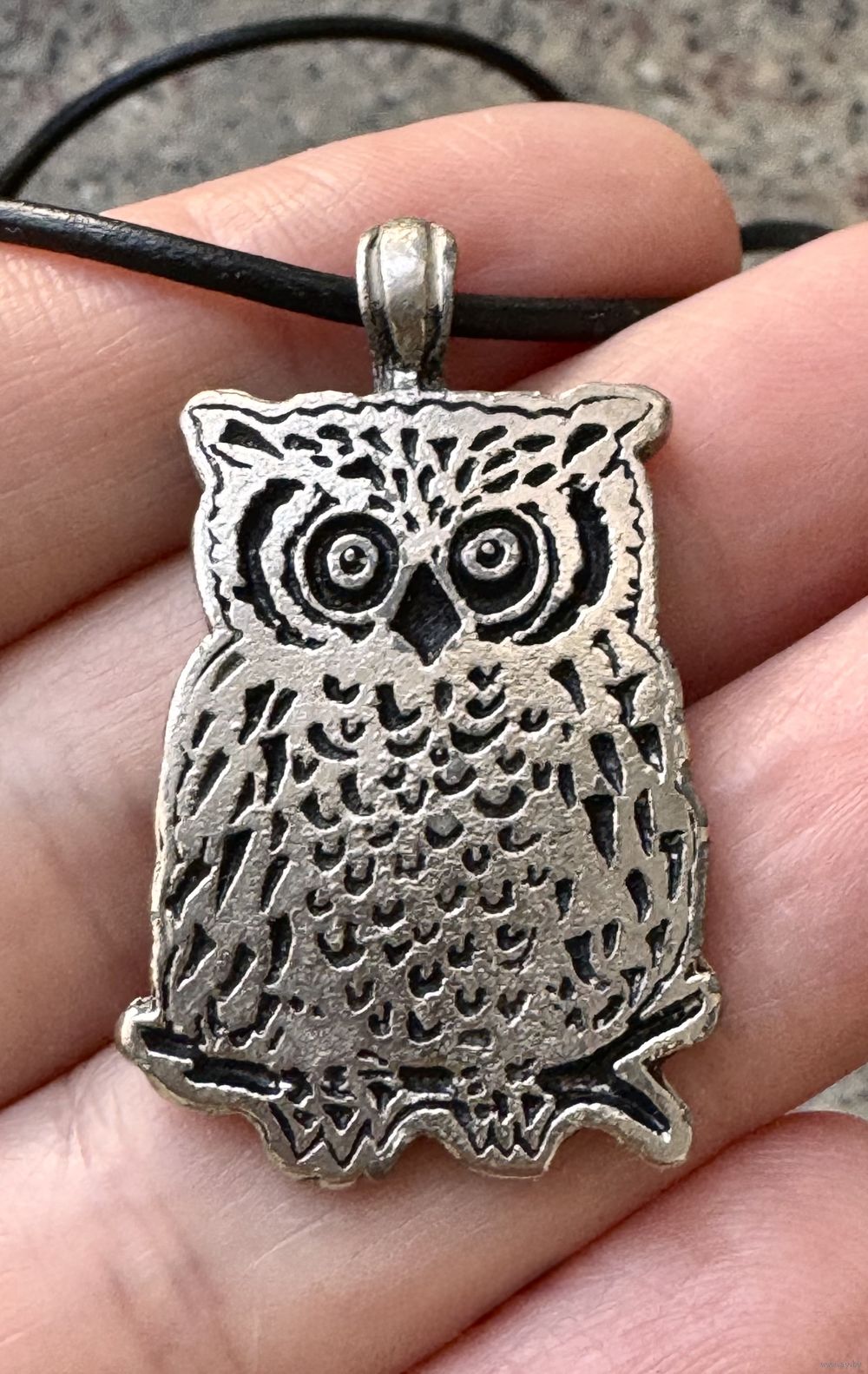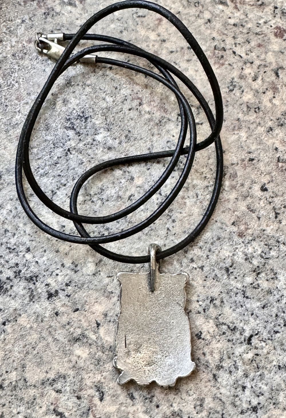 Кулон из металла серебристого тона на шнурке. Размер 4х2см., длина шнурка 60 см. Состояние хорошее.