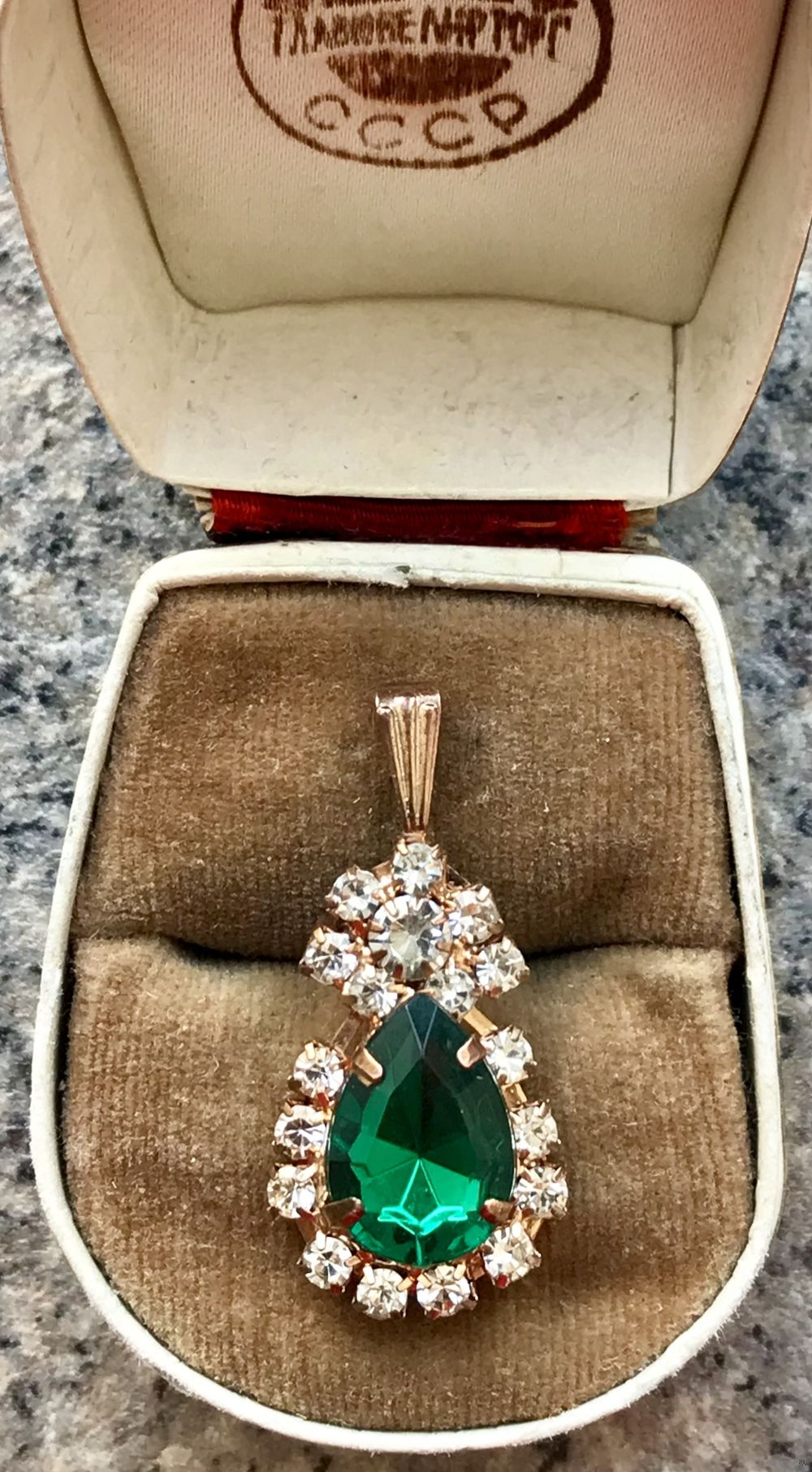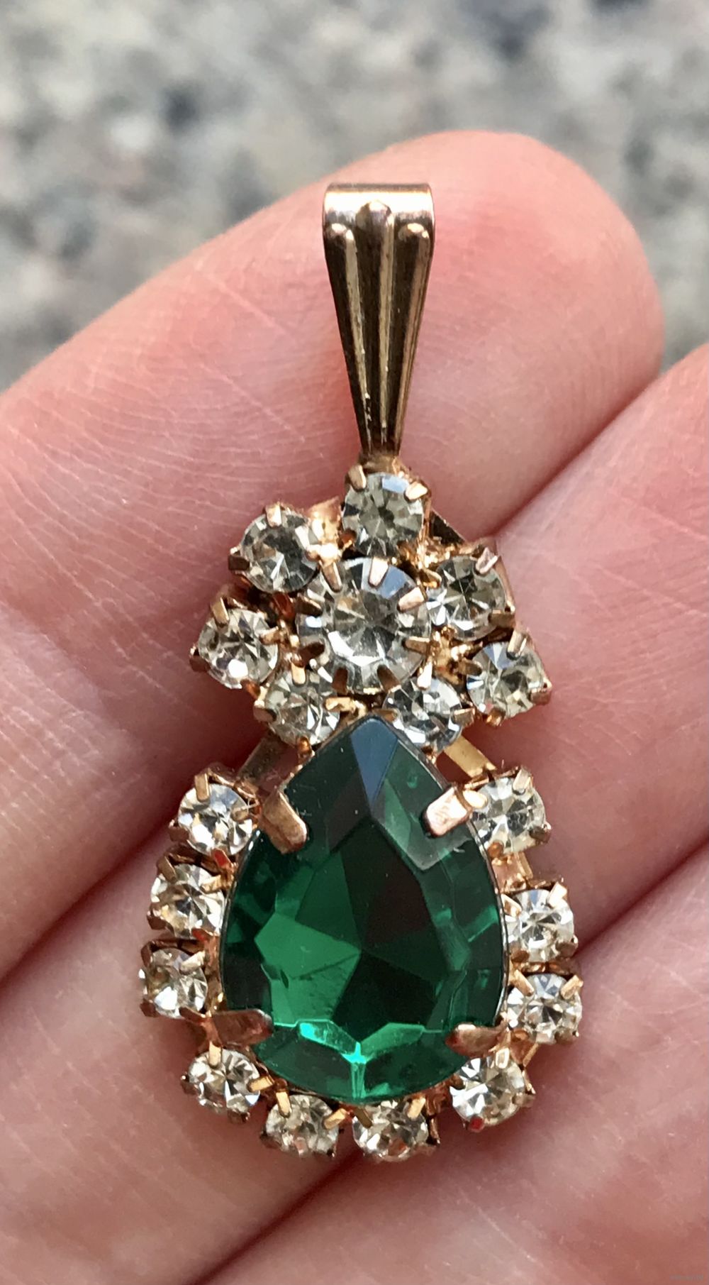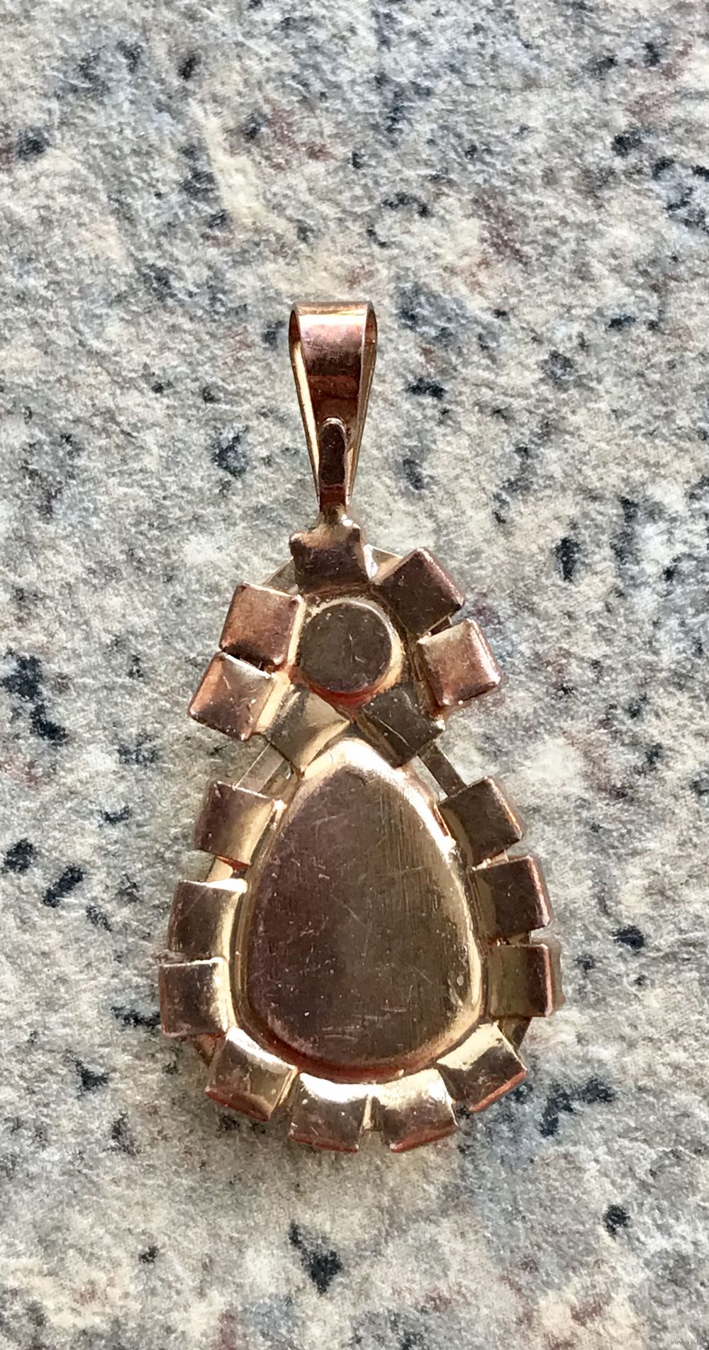 Небольшой винтажный чешский кулон с основой из латуни и вставок из стекла. Высота кулона с петлей 3,3см. На обратной стороне незначительные потёртости на металле. Общее состояние хорошее.