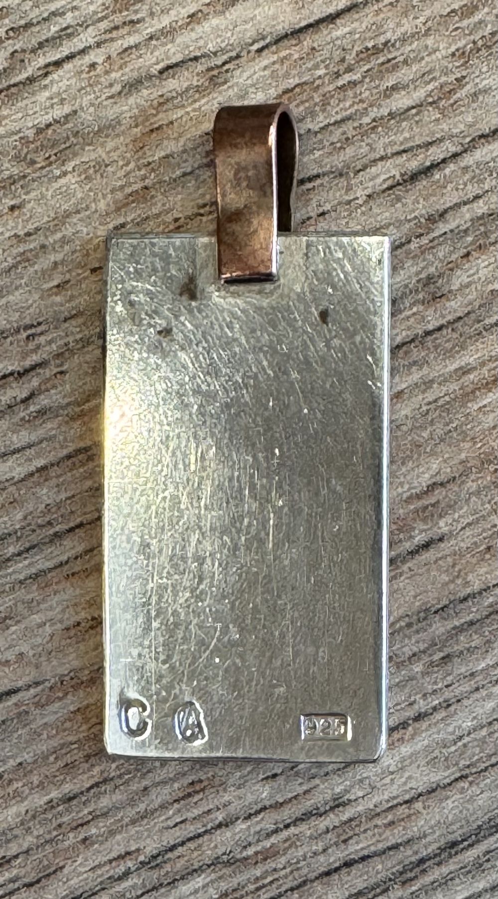 Кулон из серебра 925пр., петля из меди. Высота 3,2см., ширина 1,4см. Вес 4,23гр. Состояние хорошее.